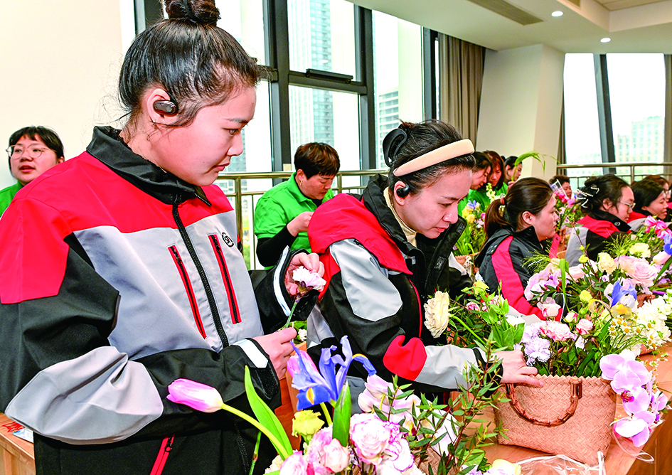 技能提升的舞台从工作延展至生活。依托职工学校,金华市总工会开展订单式服务,推出涵盖插花、茶艺、化妆和心理健康等丰富多彩的培训课程。“这两年的‘三八’国际劳动妇女节,我们都为新就业形态女职工举办了专场插花培训。”职工学校党支部书记、校长阙建介绍,这样的活动不仅丰富了女职工的业余生活,也让她们感受到工会的温暖,激励她们以更饱满的热情投身工作。“每天像陀螺一样转不停,来不及感受生活的美好,感谢工会给我们创造的机会。”美团女骑手冉敏捧着亲手制作的插花作品说道。