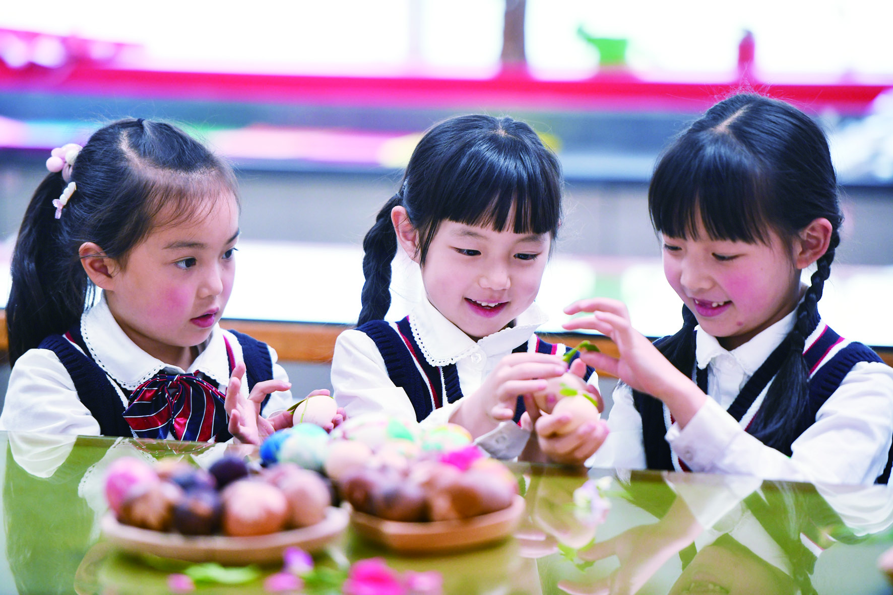 记者 时宽兵 文/摄 昨日,市区一小学举办制作清明花草蛋活动,孩子们在动手实践中体验清明节民间习俗。 孩子们在美术老师指导下,挑选花草粘贴在鸡蛋壳上,用纱布包裹后放入锅中煮熟,当鸡蛋褪去“外衣”,一个个印着各种花草图案的鸡蛋呈现在眼前。 清明花草蛋象征着五谷丰登、生活健康安宁的期盼。