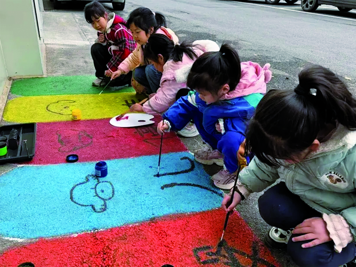 金东区融媒体中心 陈婺 通讯员 徐凯莉 文/摄 五颜六色的方框里画着萌趣图案,上面整齐停放着婴儿车——日前,金东区孝顺镇府东社区党群服务中心门前,全程由孩子们主导完成的一排专用于停放婴幼儿推车的特殊停车位施划完成。 近年来,府东社区发力建设“儿童友好社区”,伴随着婴幼儿照护服务的开设、亲子活动的日益丰富,社区党群服务中心有了更多0~3岁的婴幼儿光顾,同时也少不了他们出行的交通工具——婴儿车。“这些婴儿车停在室内会挤占空间,但停在室外挤占汽车、电动自行车的停放区又不大合适。”社区党支部负责人说,如何妥善安置扎堆的婴儿车是他们一直在思考的社区治理议题。 日前,这个议题在社区青少年宫的美术课堂上被提及,最终形成在社区党群服务中心周边手绘专属婴幼儿停车位的意见。孩子们的意见在社区党支部的支持下进入实施阶段。从在纸上画图设计起步,孩子们发挥创意,让婴幼儿停车位呈现他们心目中的美丽样子。准备好涂料、刷子和测量工具,孩子们在规划的场地上,绘制出车位线和缤纷图案。 如今,府东社区党群服务中心外,崭新的婴幼儿停车位整齐排列,整个区域显得秩序井然又吸睛,颇受婴幼儿家长的好评。社区党支部负责人说:“婴幼儿停车位项目的完成,是社区‘儿童友好’理念落地生根的有力见证,让我们有信心看到儿童参与社区治理的更多可能。”