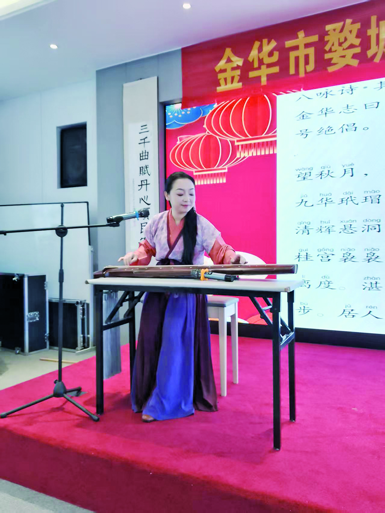 她也偶尔受邀采风,走进乡村,写几篇近体诗,或是应约排演几场古琴吟诵节目,将国学风送到市民中间,也会在金华教育学院以及金华部分中小学校作为外聘老师教授古诗词吟唱课程,圈了一群大小粉丝。