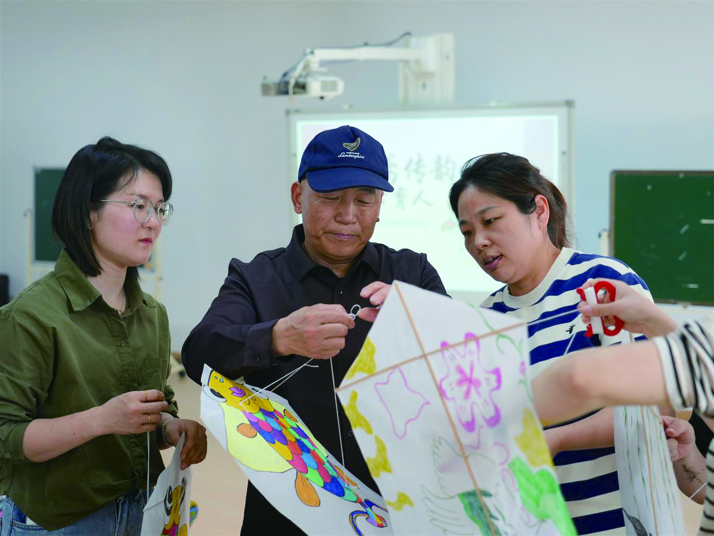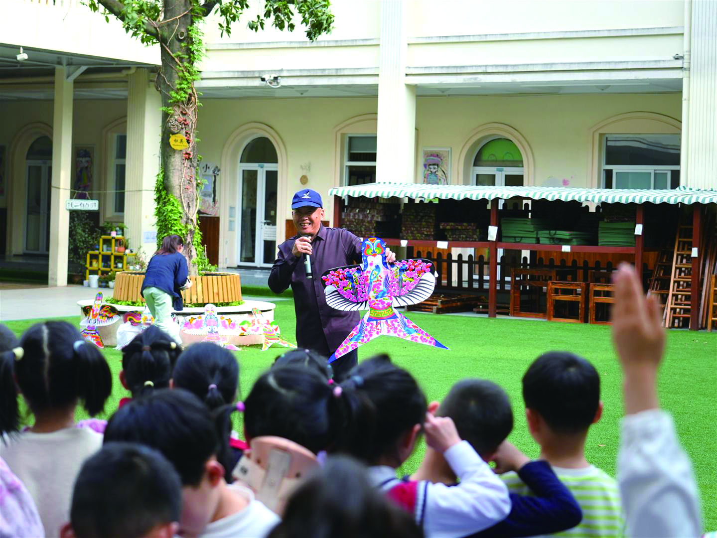 从“手作”到“心传”。作为非遗传承人,黄红专认为自己不仅是技艺的守护者,更是文化的播种者,非遗的教学不应局限于技法,更注重文化内涵的传递。“一堂风筝课或许无法培养出大师,但能在青少年心中埋下文化自信的种子。”黄红专说。当他拿起5米宽的滚地龙风筝向孩子们展示,孩子们也争先恐后地想亲手放飞风筝时,非遗的基因已随着春风悄然生根。