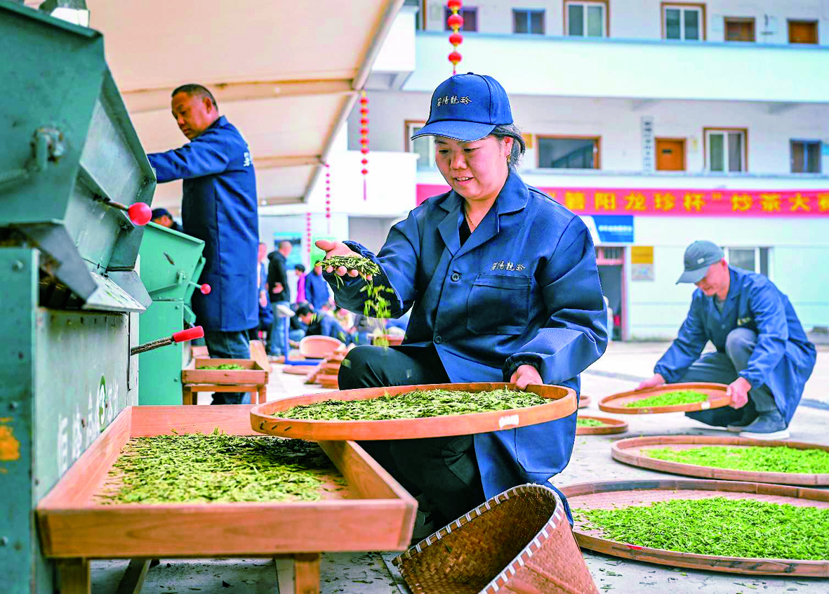 记者 胡敏霞/文 吴潮宏/摄 4月8日,婺城区“箬阳龙珍杯”炒茶大赛在箬阳乡拉开序幕。现场,11位参赛选手动作娴熟,难分伯仲。 此次炒茶大赛为标准化机械炒制竞赛,采用现场实际操作的方式,选手在规定时间内用扁形茶炒制机,将规定重量的鲜叶原料制成“箬阳龙珍”。相关行业专家现场评审、打分,确定参赛选手制茶水平。