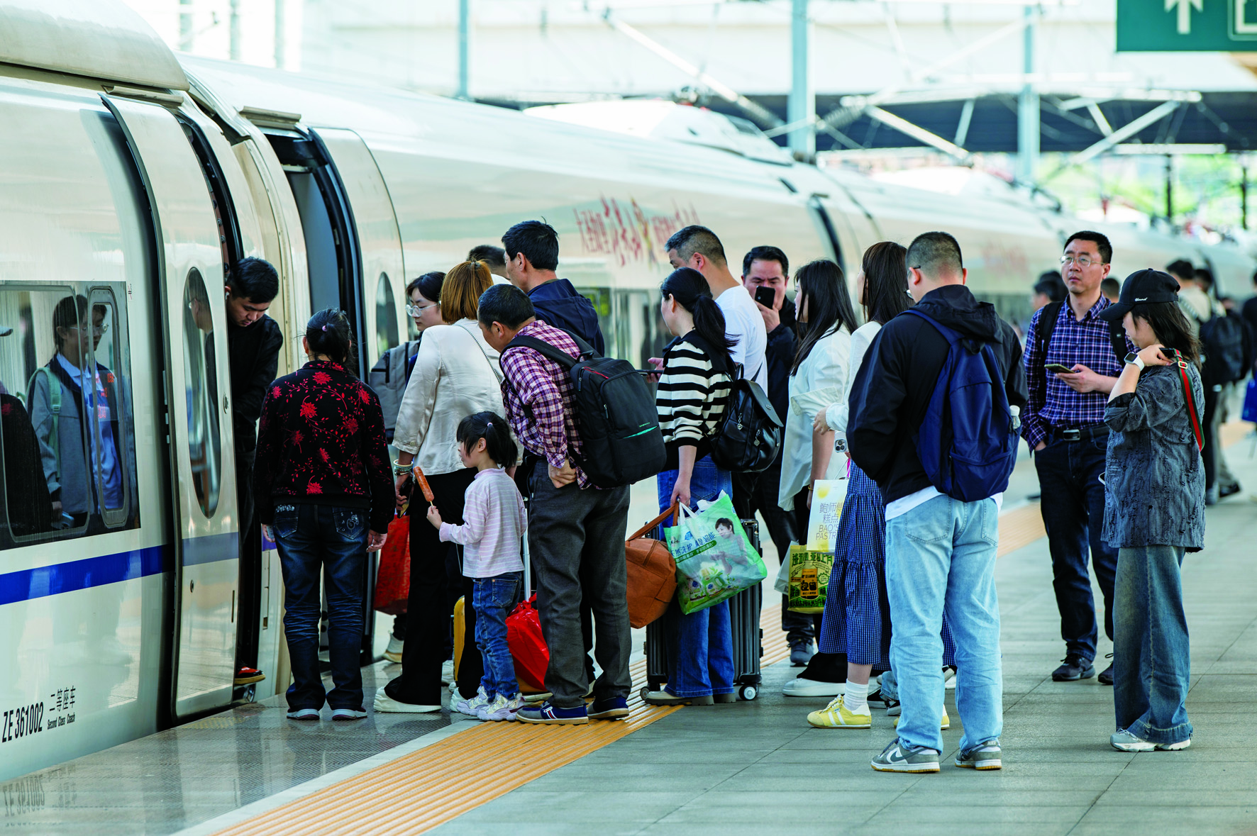 记者 胡肖飞 文/摄 4月10日,铁路金华站站台上,旅客有序乘车。 据悉,4月10日零时起,全国铁路实施2025年第二季度列车运行图。