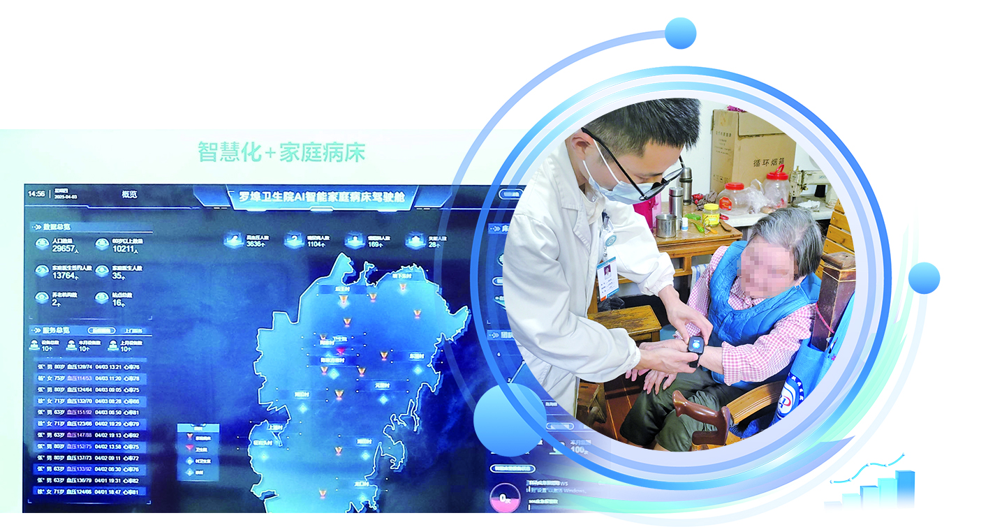 像胡卸琴一样从智慧化家庭病床中受益的家庭不是个例。今年以来,罗埠镇中心卫生院累计开设家庭病床40张,目前在管家庭病床31张。家庭医生评估病人健康状况后,配备相应智慧化健康设备,并纳入“AI智能家庭病床驾驶舱系统”管理。纳管人员健康状况可在罗埠镇中心卫生院智慧大屏幕上实时查询。