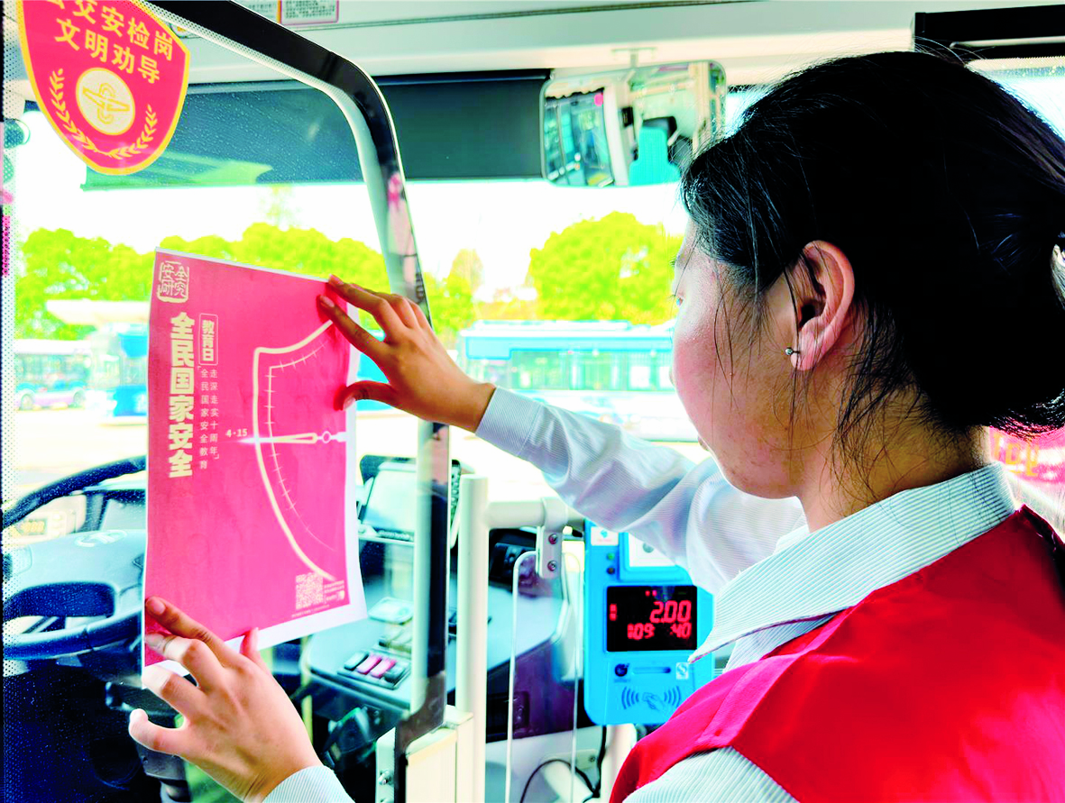 记者 李建林 文/摄 4月11日,市交投公交集团营运二公司组织党员志愿者,在公交车车厢内张贴国家安全知识海报、向乘客发放国家安全法等宣传资料。 今年是国家安全法颁布施行10周年,4月15日是第十个全民国家安全教育日。今年全民国家安全教育日的活动主题为“全民国家安全教育 走深走实十周年”。