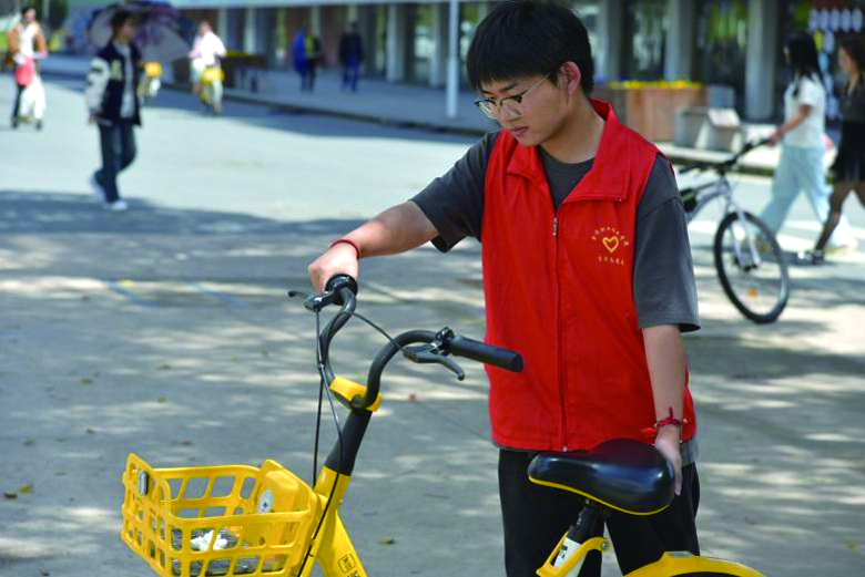 “同学,共享单车要停到指定区域哦。”声音清脆,面带笑容,这是他志愿服务的日常。