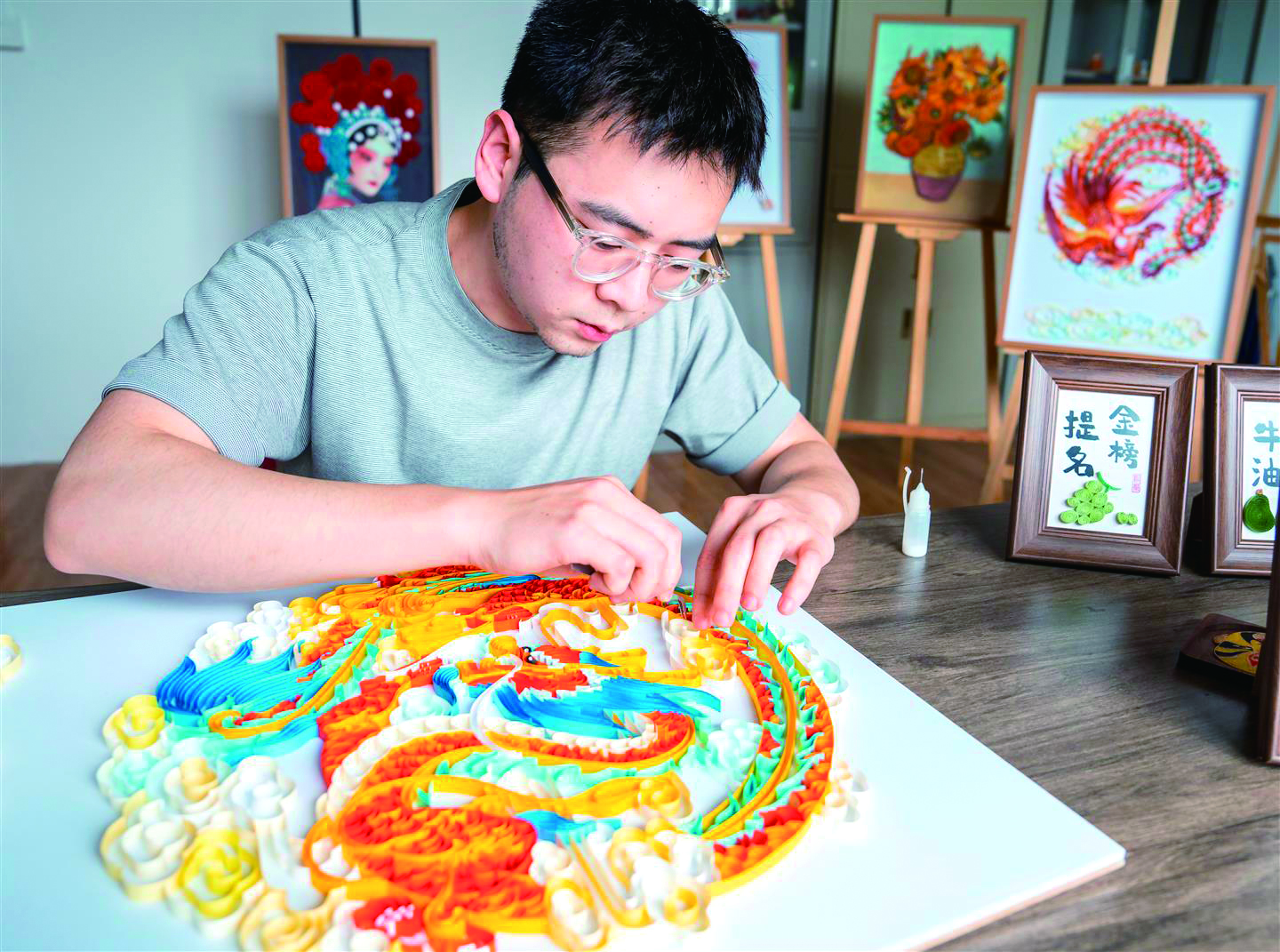 “95后”盘纸艺人邵路杰
