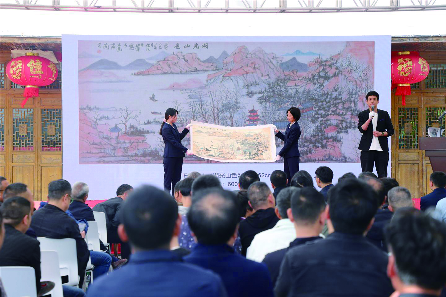 义拍作品创作者方钢军是中国美术家协会会员、中国书法家协会会员。2014年,他定居前吴乡民生村,扎根乡野潜心创作,以笔为犁深耕“艺术乡建”。谈及举办此次活动的初衷,他表示,“这些作品中,不少山水画作里融入了通济湖、梯田、吴莱山等地方元素。希望借助这次活动,可以吸引更多的书画家来民生村写生创作,助推前吴乡文化旅游事业发展。”