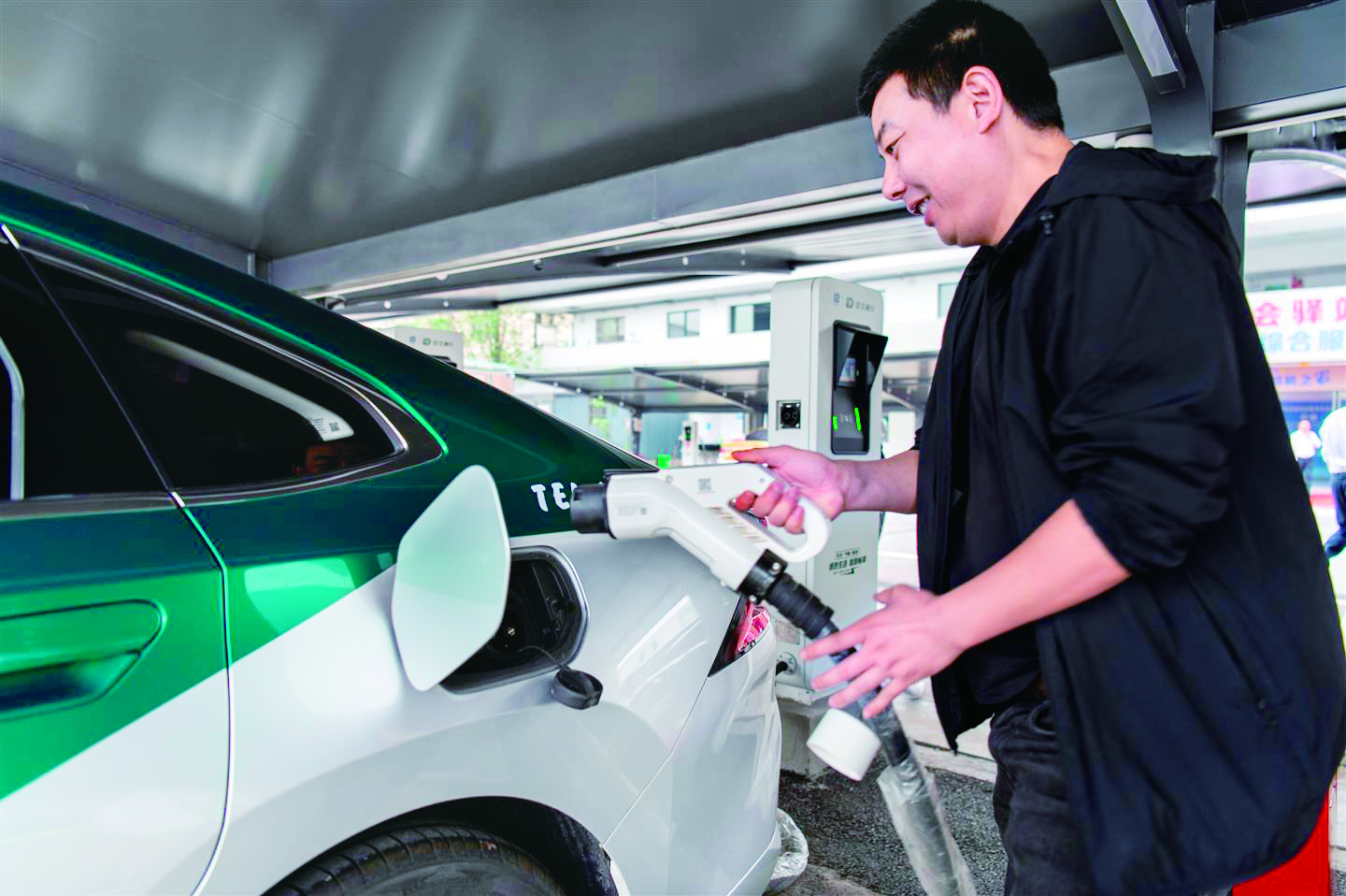 记者 胡肖飞 文/摄 昨日,在市交投集团通济公司出租车综合服务区,出租车司机给新能源汽车快速充电。 当日,我市出租车综合服务区投用。针对出租车司机“充电难、休息难、维保难”,该服务区提供新能源快充、自助洗车、车辆维修保养、餐饮娱乐、应急药箱5项基础服务,并开展安全教育、普法宣传、阅读吧、健身区等延伸服务,实现一次停车,“充电+休整+维保”全解决。