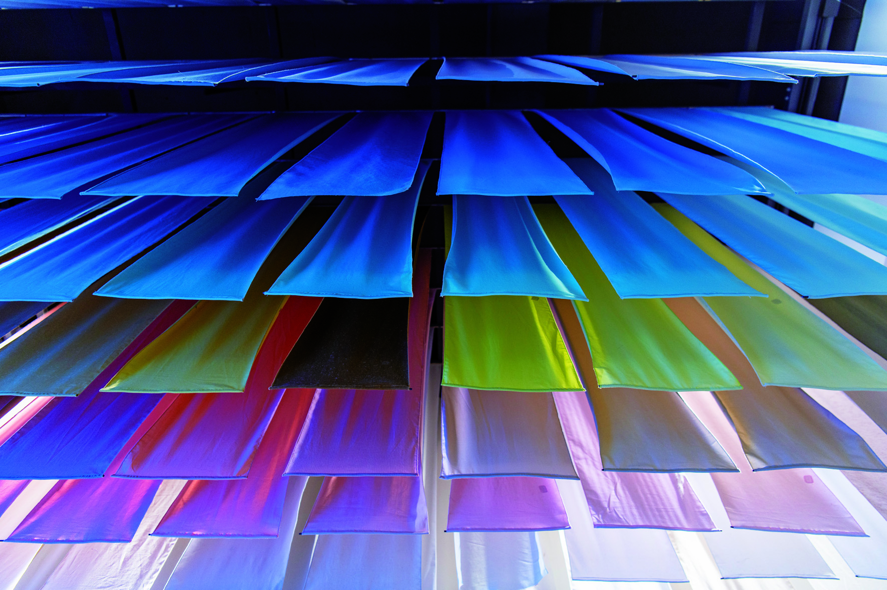 走进浙江万舟控股集团有限公司展厅,上千块色布鲜艳夺目,每块布因为原料和生产工艺不同,都有着独特的纹理。对面的生产车间,每天都有130多万米白坯布出厂,供应给下游上千家企业,染整成色布,用于服装和家纺用品生产。