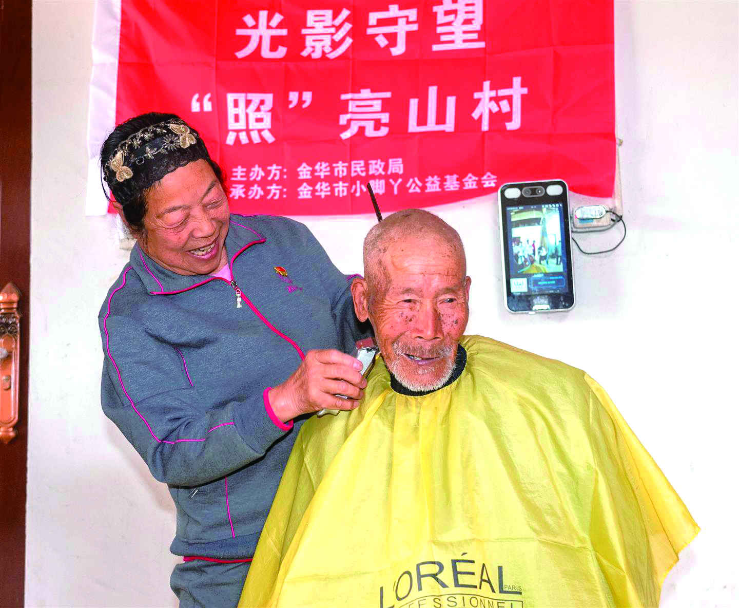 “金华城里来了理发师,不要钞票,剪得又好看。”消息在村里传开,更多老人赶来。腿脚不便的郑银花被女儿搀扶过来,理完头发笑眯眯,露出了酒窝。77岁的李福英也来了,由于近期胳膊疼痛,不方便打理头发,留了几年的辫子,早就想剪了,当天剪下来的辫子被她收了起来,可以卖几十元钱。百岁老人李石进理发时,村民们向他请教,如何在100岁的年纪还有黑头发,他的答案是“不知道”……两个小时里,3位理发师双手未停,一缕缕花白的头发掉落在地,一位位老人满意而归。