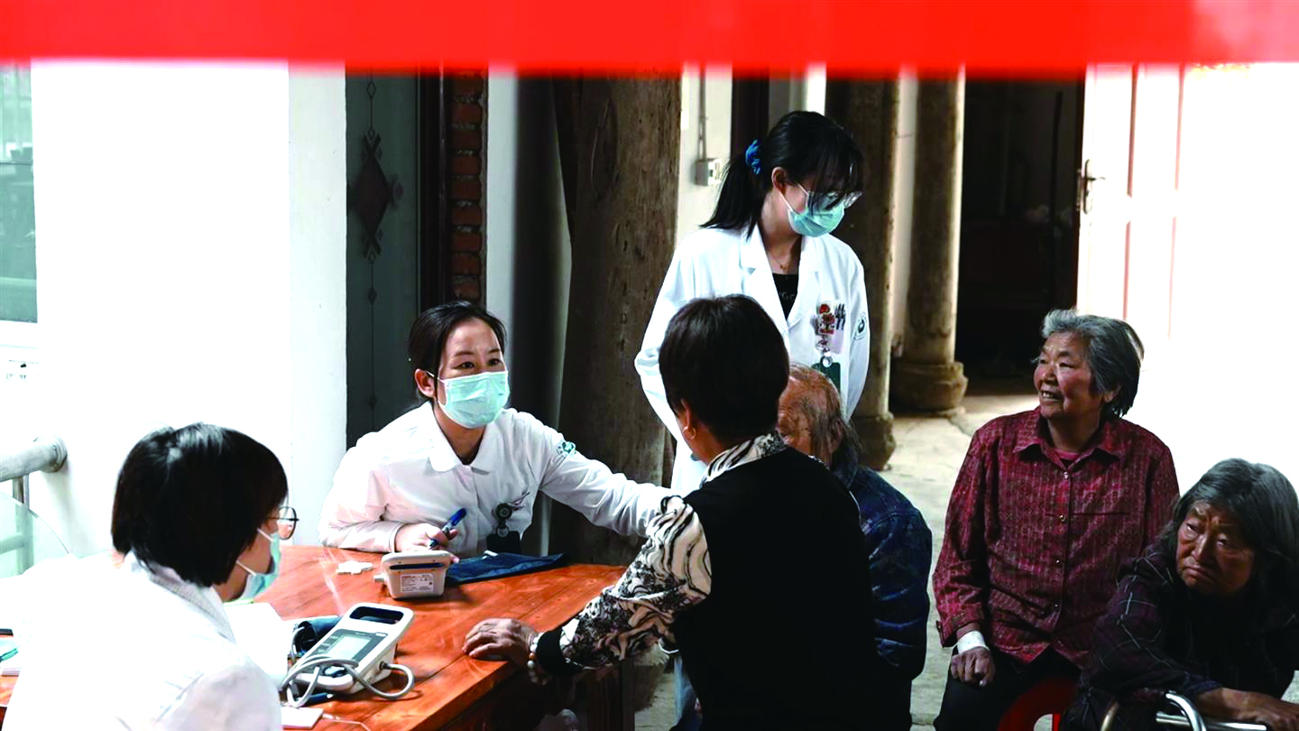 166/82,忘记服药了;148/91,偏高一点;153/89,服过药物……每测量一次,医务志愿者都会详细询问老人的服药情况。