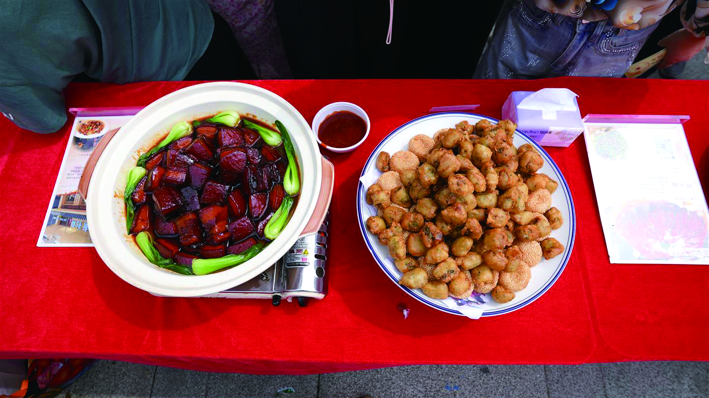 “这个红烧肉看起来就很好吃。”“妈妈,我想吃这个蛋挞。”“这么好看,我要拍张照”……活动现场,来自辖区32家餐饮店的大厨们一展身手。一阵有条不紊又热火朝天的忙碌之后,一道道特色家常美食一排排整齐摆放,烂菘菜滚豆腐、麻辣小龙虾、高压锅鱼头、爆炒猪肝、五香肥肠等,汇集成一场美食嘉年华。