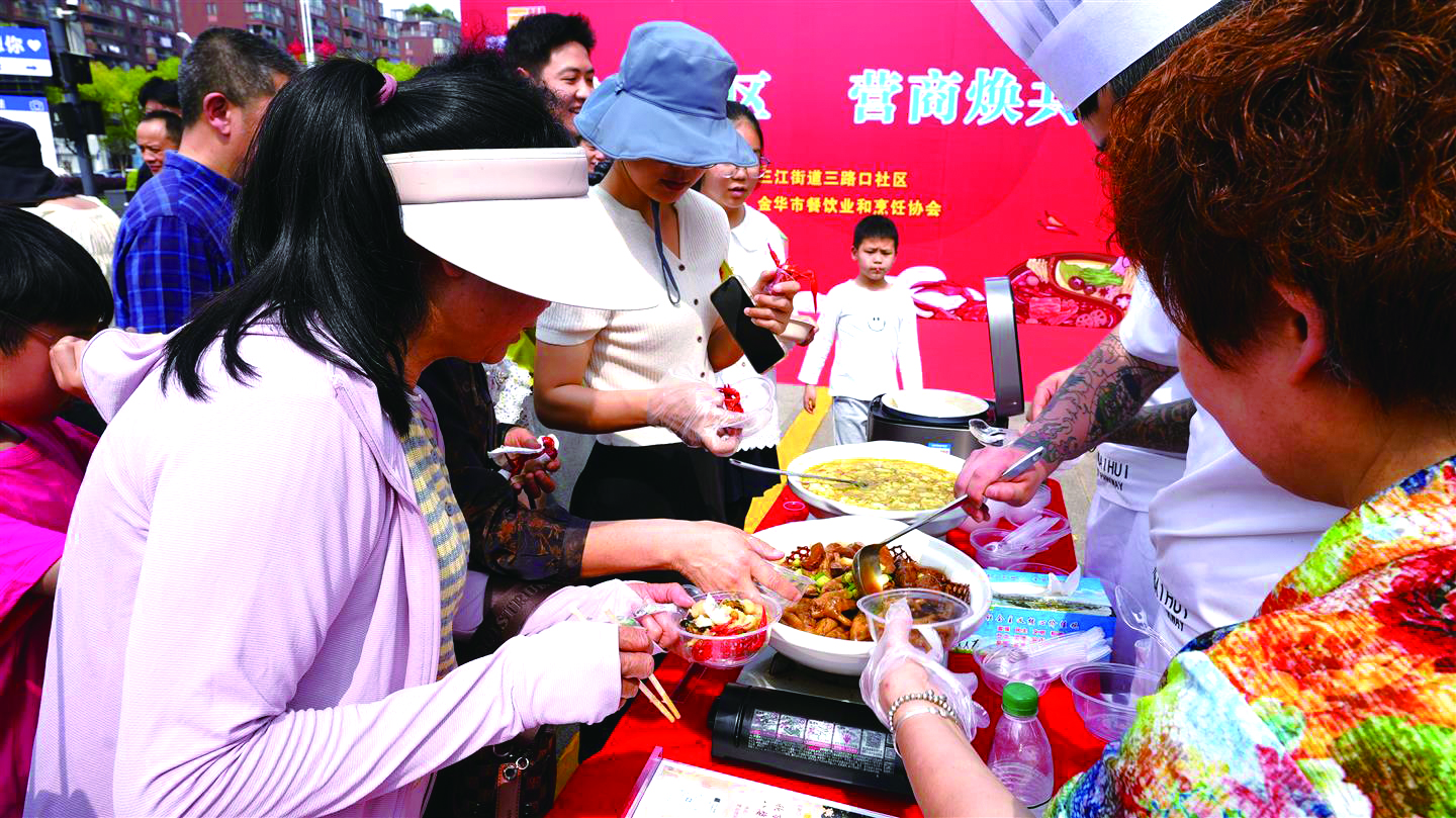 近日,金华开发区三江街道三路口社区美食荟活动在大润发休闲广场开展。