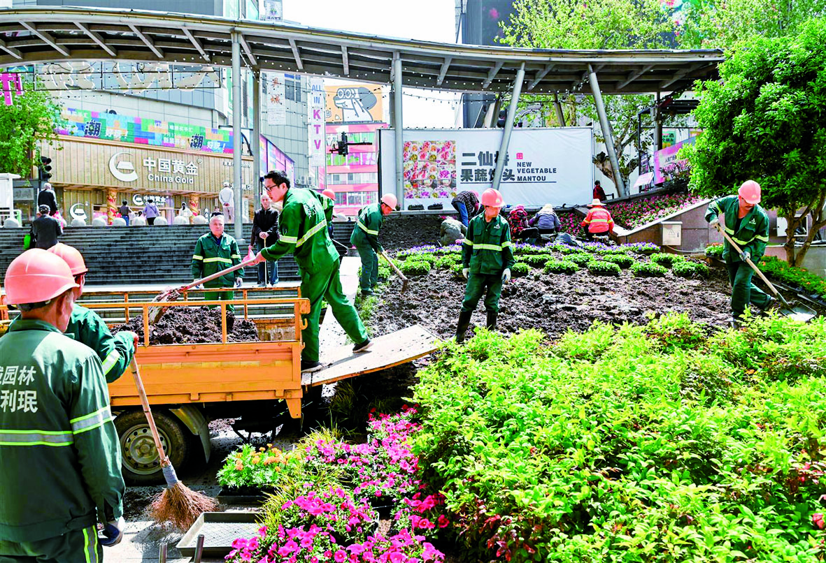 记者 李建林 文/摄 4月24日,在市区人民广场,园林工人有条不紊地将粉色矮牵牛、小丽花等花卉栽种在花坛中。随着“五一”临近,园林部门提前在市区主干道、公园、广场等处布置花卉,用鲜花装扮城市,营造欢乐祥和的节日氛围。