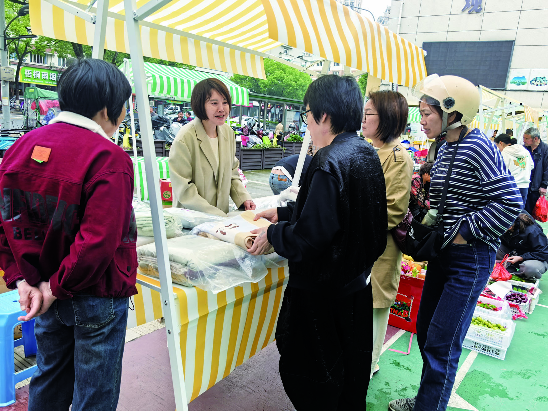 记者 董金姣 文/摄 4月25日,金华开发区西关街道五里亭社区新时代文明实践站清廉广场,“荷风市集”热闹开市。本次市集共设置19个特色摊位,涵盖手工艺品、便民服务、食品、生活用品、花卉等多个领域。不少居民表示,社区办共富市集既方便了居民,又帮商户打开了销路,真正实现了双赢。