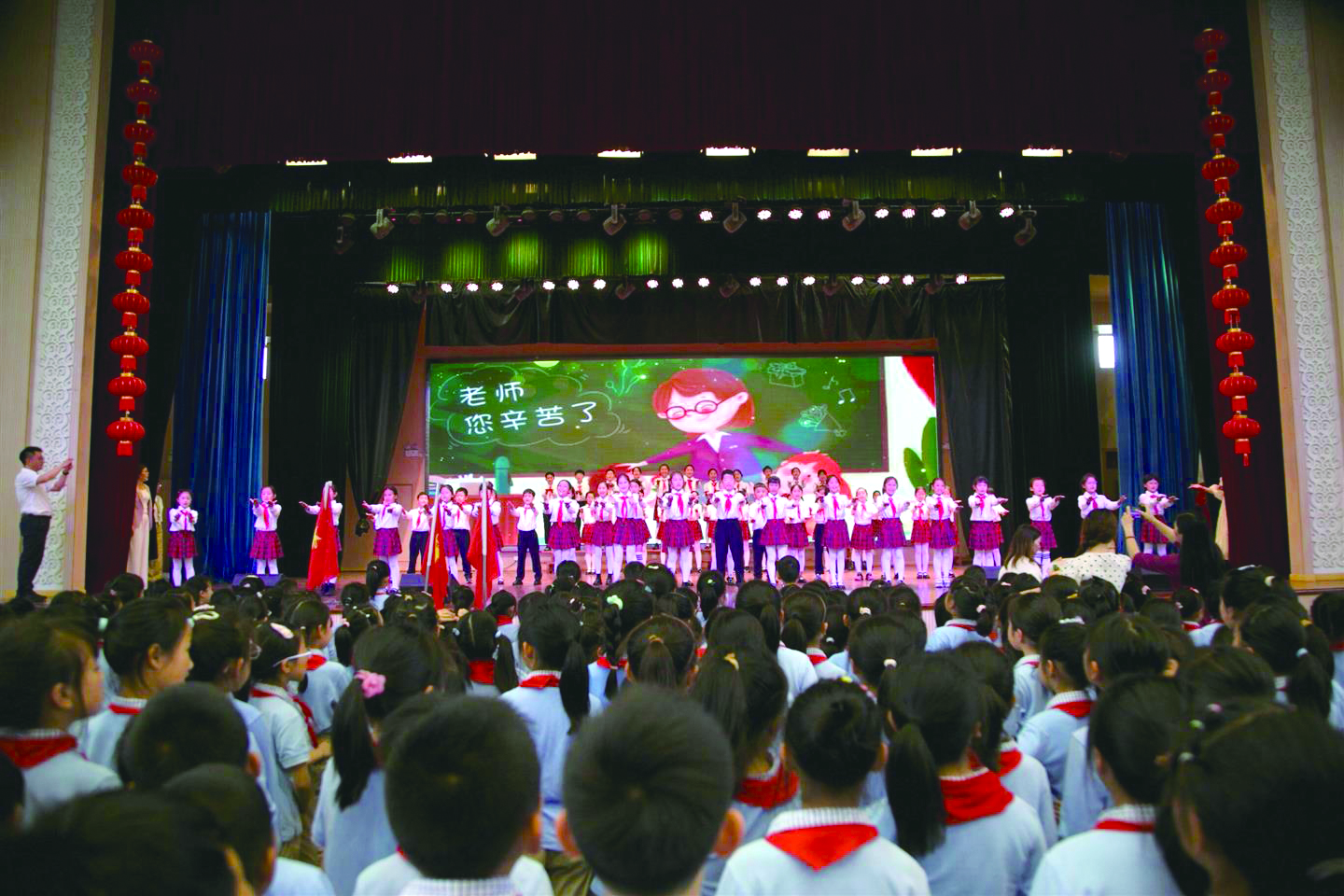 本报消息(通讯员 李艺珂/文 潘丽丹 张姣/摄)近日,东阳市外国语小学首届班主任节以“师心映辉 筑梦同行”为主题,开启为期一周的活动,将感恩教育融入行动,展现教育者的匠心与风采。 教室满溢温情,孩子们利用周末拍摄的祝福视频,记录下老师伏案工作的瞬间,喊出“老师,我爱你”的真挚告白。视频在体艺馆大屏滚动播放,不少老师眼眶湿润。 开幕式上,校长葛敏辉在致辞中赞扬班主任是学生成长引路人,其爱心、耐心与责任心温暖学生心灵。学生代表讲述成长故事,手捧鲜花鞠躬行礼表达对老师的敬爱。师生共唱《感恩的心》,将现场气氛推向高潮。 教学楼变身创意海洋,孩子们用卡纸、干花制作的“温馨拾光卡”在走廊展示,形成流动的感恩教育展。孩子们以画笔勾勒心中的班主任形象,卡片上的图画与感恩话语,承载着敬意与爱戴。与此同时,班主任座谈会围绕“让德育有根”“让节日有光”“让初心有暖”展开研讨,分享“超级自律日”等创新管理做法,碰撞育人智慧。专业成长沙龙中,特级教师董兰芳以《读懂孩子走进心灵》为题,结合“情绪冰山理论”解析教育案例,为班主任答疑解惑。