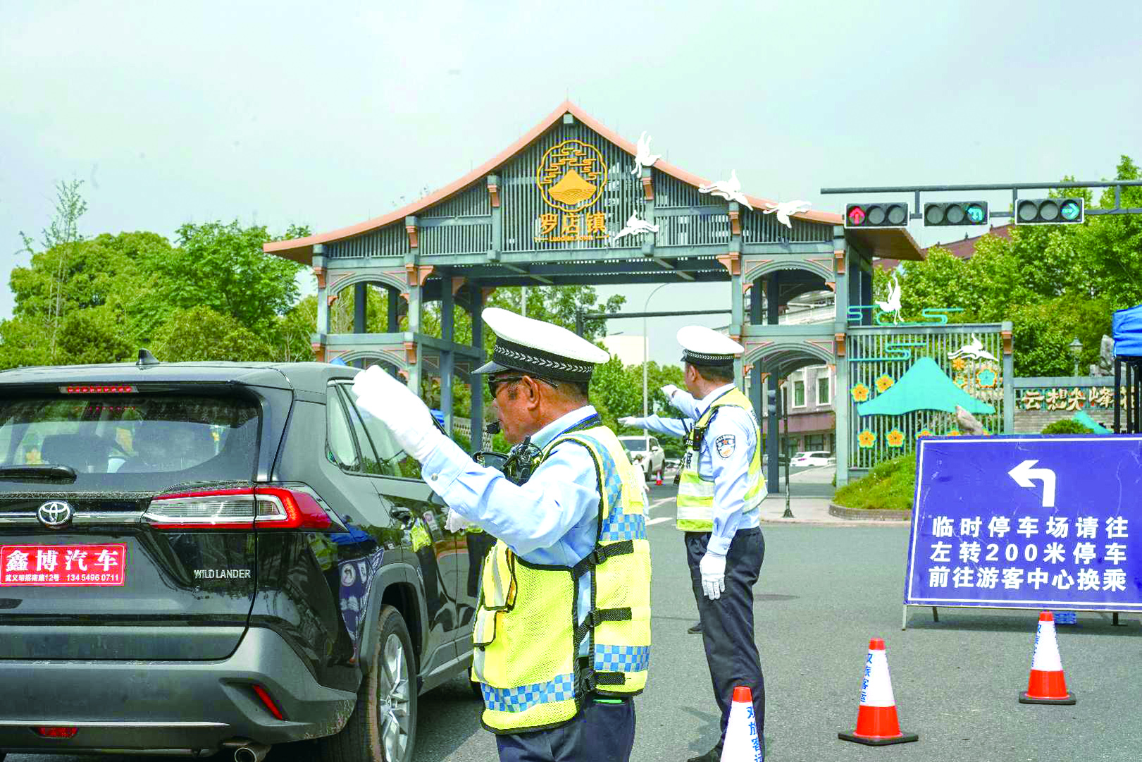 当天上午9时30分,景区游客中心停车场1200个车位饱和,执勤警力迅速引导车辆向可以容纳近2500辆车停放的智者街临时停车场分流。罗店中队副中队长詹天伦介绍,随着车辆停放点的改变,交警执勤重点也按照交通保障预案规划进行及时调整,提升车辆通行效率。