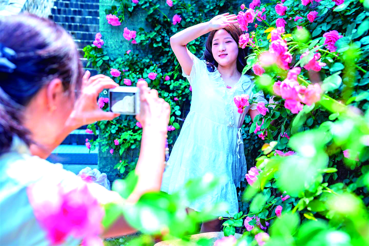 记者 傅俊 文/摄 “五一”假期,市区商圈一派热闹景象。到江北逛商场的市民和游客,行至通远门城垣遗址,纷纷为此处的蔷薇花驻足,拿起手机拍照打卡。成片的蔷薇花层层叠叠,如油画般晕染开来,像是一片巨大的粉色花海,与古城墙相映成趣,让城市的节日氛围更浓。