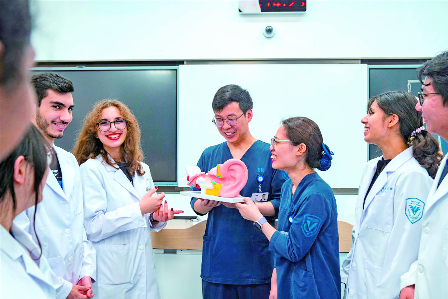 记者 陈业 文/摄 昨日,在义乌浙江大学“一带一路”国际医学院,浙江大学医学院附属第四医院的医护人员以趣味教学形式,为医学生们上了一堂生动的实践课。通过模型操作、情景模拟等互动方式,学生们在轻松的氛围中熟悉临床流程,提升实操能力。