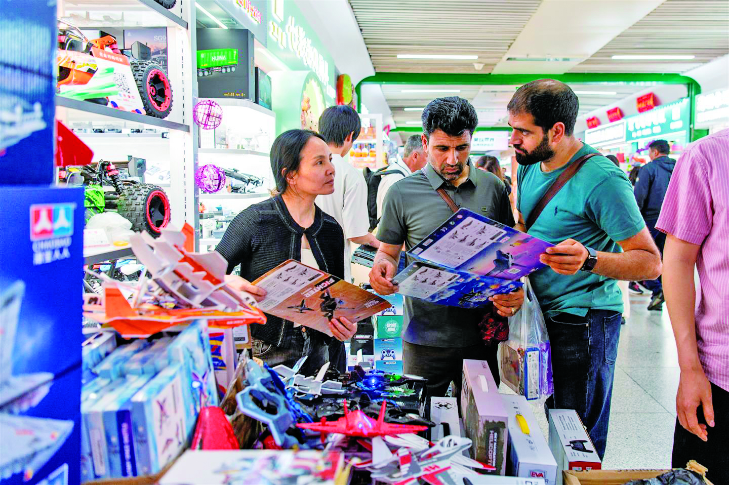 记者 胡肖飞 文/摄 5月8日,义乌国际商贸城里,国外采购商在采购商品。 近期广交会的溢出效应,义乌国际商贸城迎来一拨又一拨国外采购商。近年来,义乌凭借政策红利、产业韧性与市场活力,吸引越来越多的国外采购商到这里寻找商机。