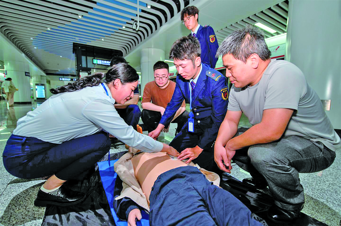 记者 胡肖飞 文/摄 5月8日是“世界红十字日”。当天,市轨道交通集团组织开展“急救知识进车站”活动,工作人员向乘客传授应急救护知识,提高乘客紧急避险意识和应急救护能力。