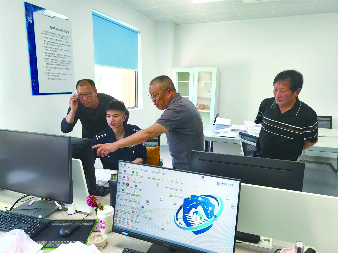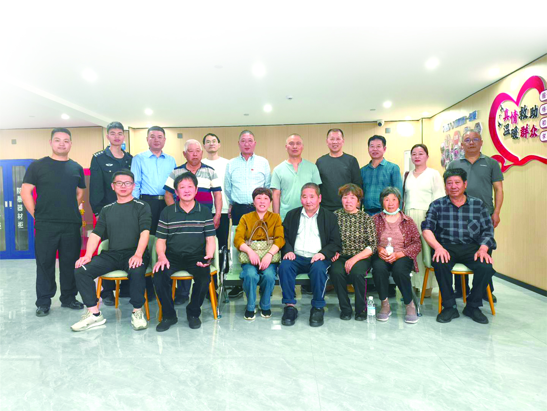 在民警的见证下,一家人坐在一起,拍下了第一张全家福。临别时,戴正元一家向金西治安防控中心的民警、辅警们表达了感激之情。