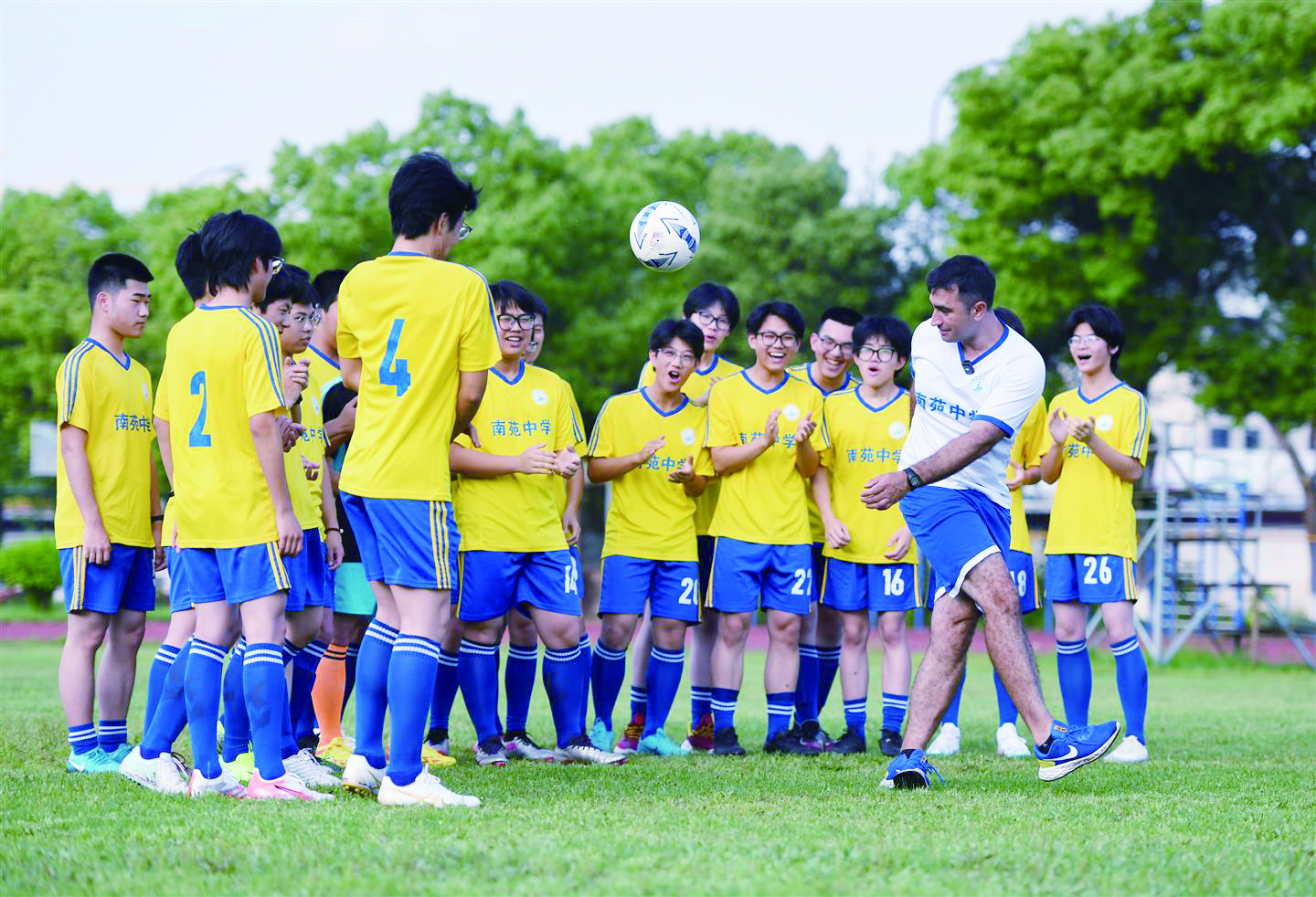 教练马塞洛加入南苑中学后,学校着手组建男子足球队,让从小热爱足球的高二学生姚虹宇颇感兴奋,第一时间报名。“每天进行一个半小时训练,教练说以后会带我们和其他学校打友谊赛,甚至参加专业比赛,我感觉离梦想更近了。”姚虹宇说。作为该校体育教研组组长,胡拓则看到了外籍教练在体育教学中展现的优点:“他的性格热情外放,对学生不吝夸奖和鼓励,课堂氛围活跃,值得其他体育老师学习借鉴。”