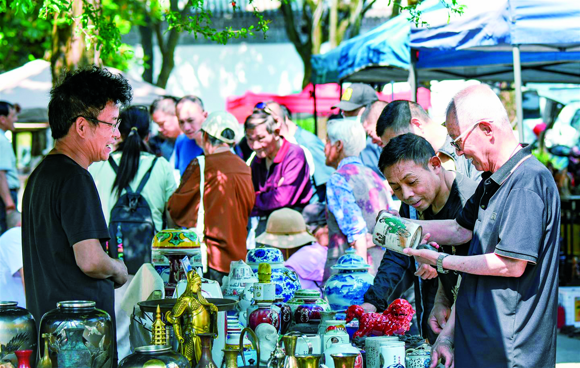 记者 李建林 文/摄 5月11日,在市区古子城内,市民或品鉴古玩或挑选玉器,在寻奇找趣中享受周末的悠闲时光。 记者看到,古玩市场里字画、文房四宝、玉器陶瓷等珍品琳琅满目。摊位上,一件件古玩被精心布置,吸引不少爱好者前来“淘宝”。据了解,如今一些古玩爱好者希望通过收藏实现财富增长,这也是现代收藏的经济驱动因素。