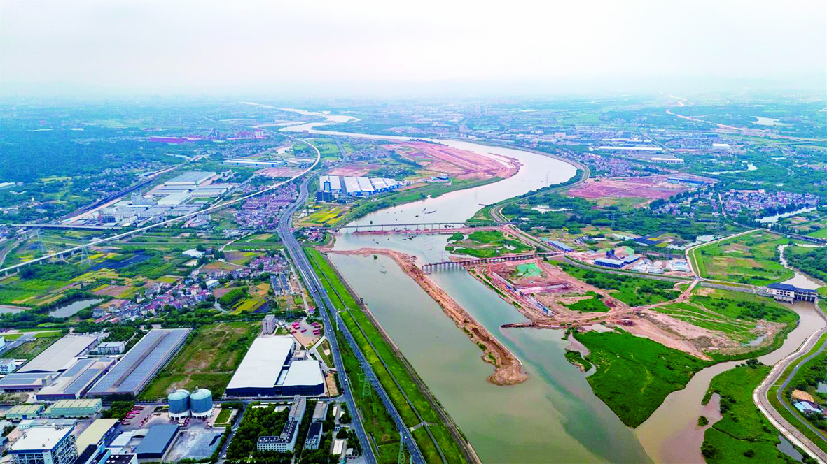 记者 胡肖飞 文/摄 5月11日,俯瞰金华江三级航道,灵马大桥改建和灵马枢纽建设工作正稳步推进。 金华江是国家高等级航道网的重要组成部分,金华江三级航道整治工程一期工程被列入2024年浙江省“千项万亿”工程,于2024年9月开始动工建设,航道整治里程约12.1公里,项目总投资17.1亿元。该项目实施建设有助于推动金华江航道沿线临港产业发展,促进当地经济提速增效。