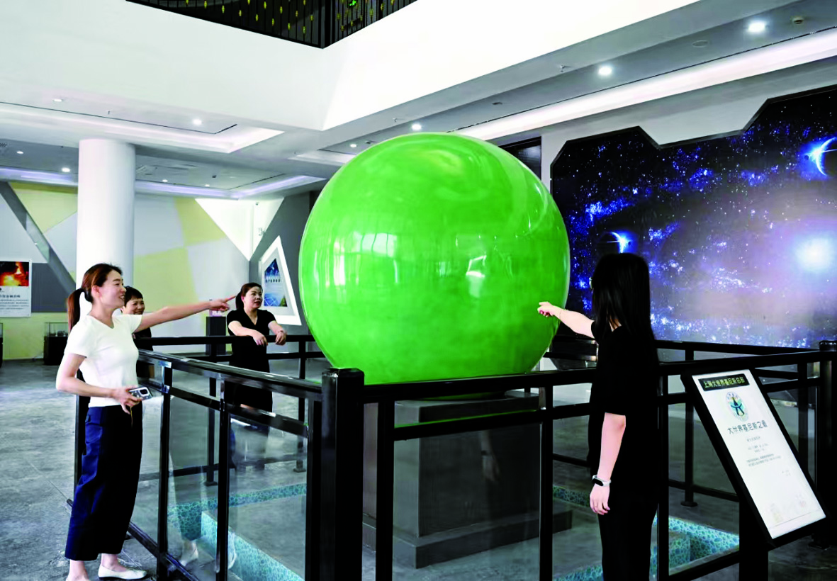 通讯员 张建成 李云升 文/摄 昨日,游客在武义县萤石博物馆参观镇馆之宝萤石球。 萤石博物馆占地面积1.8万平方米,是全国首家萤石伴生温泉的博览园。该博物馆拥有4项世界吉尼斯之最,还有11860件萤石晶体、惟妙惟肖的萤石“满汉全席”。该博物馆现为金华市科普教育基地。