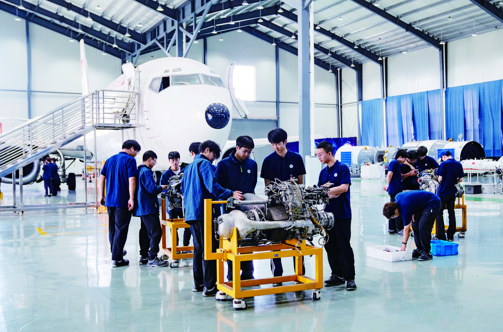 记者 陈业 文/摄 昨日,在金华职业技术大学产教园内,航空工程学院飞机机电设备维修专业的学生们,在老师的指导下维修直升机、喷气机发动机部件等。该专业开设以来,毕业生颇受青睐,每年都有不少航空公司来学校招人。
