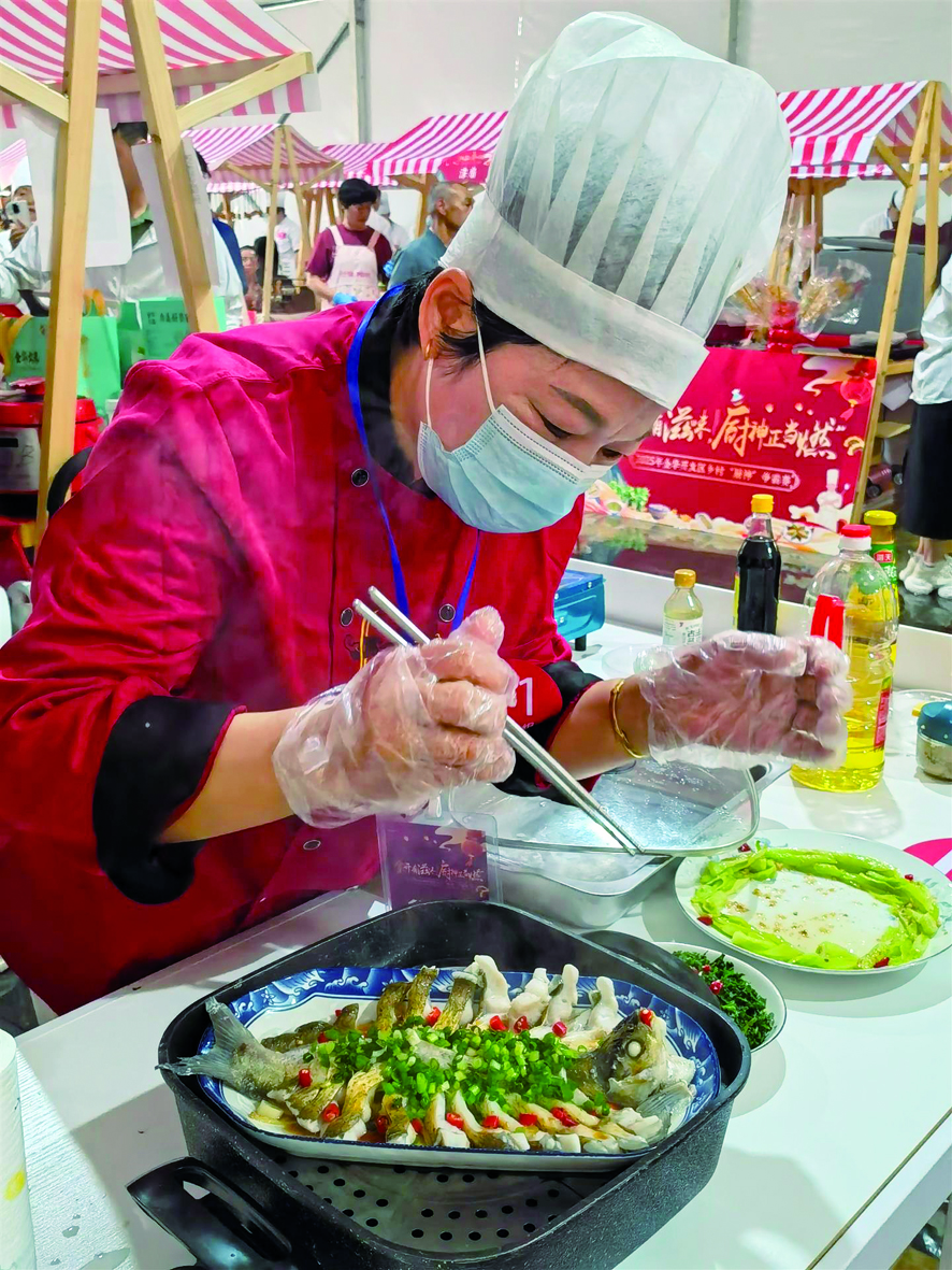 比赛开始后,过油、下料、调味、装盘……选手们或蒸或煮,或炸或炒,各显神通,“厨艺交响曲”在灶台间激情奏响。不一会儿,比赛现场香气四溢,令人胃口大开。参赛的乡厨们以本地特色食材为“笔”,传统烹饪技法为“墨”,创作出一道道兼具风味与创意的佳肴。