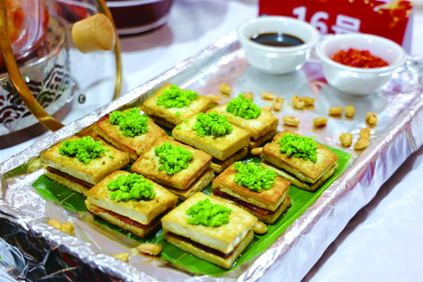 千张牛肚帮、毛芋鳝鱼、葱花肉、烂菘菜滚豆腐……既有家常菜又有创意菜还有非遗美食,一道道具有家乡味、乡土情的特色菜品吸引了众多市民的围观与赞叹。大家纷纷驻足欣赏、品尝、拍照留念,为厨师们的精湛技艺喝彩。除了热菜,汤团、清明粿、乌饭、麻糍、麸浆果等当地特色美食也逐一亮相。专业评委与大众评委组成的评审团从色、香、味、形、创意等方面对两组菜品进行逐一打分、投票,评选出优胜者。