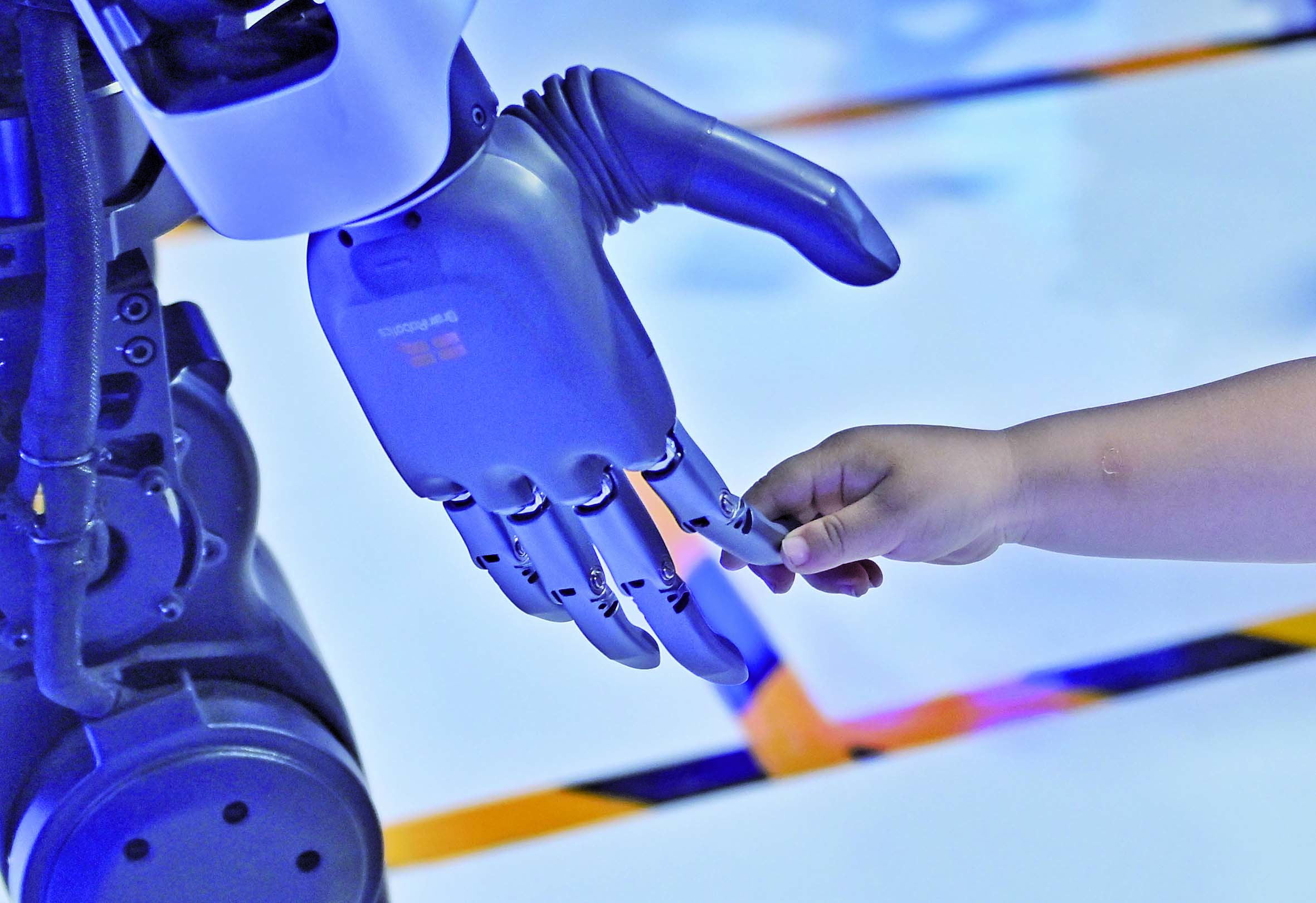 5月25日,一名小朋友在第二十届中国西部国际博览会展会现场与机器人互动。 当日,第二十届中国西部国际博览会在四川省成都市开幕,主题为“深化改革增动能 扩大开放促发展”,由四川省人民政府主办。据了解,本届西博会首次设立匈牙利、老挝双主宾国和浙江、青海双主宾省,共吸引境内外3000余家企业参展,博览会将持续至29日。 新华社发