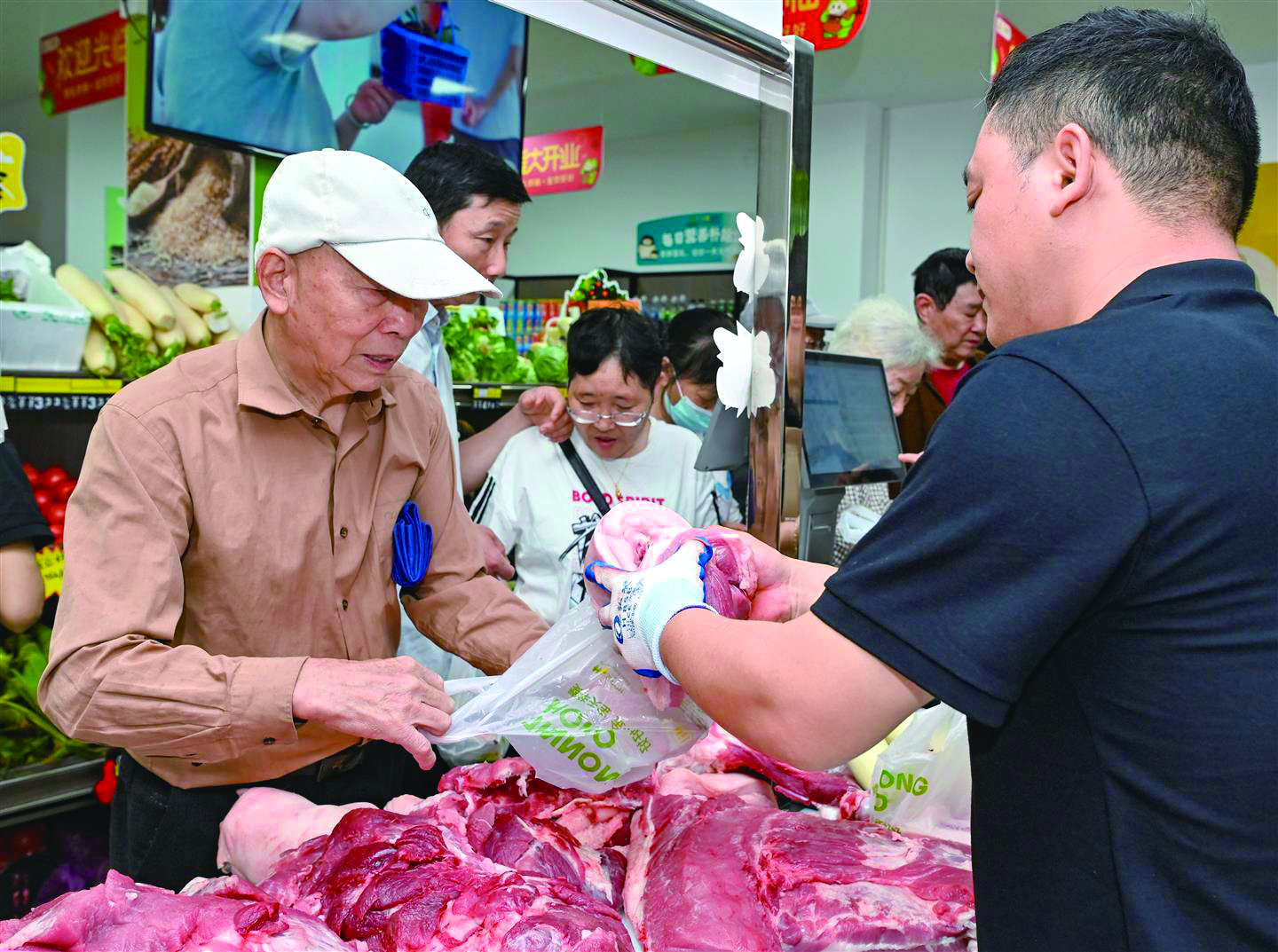 记者 李建林 文/摄 5月27日,市区一商超内市民在购买猪肉用于包粽子。端午临近,市场上粽叶、五花肉、咸蛋黄等销量激增,部分品类销量较平日增长超50%。