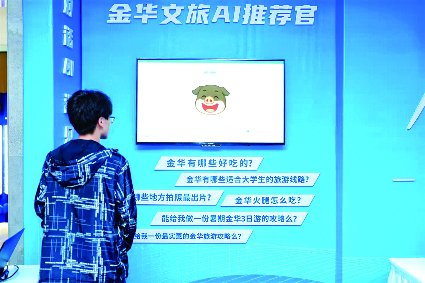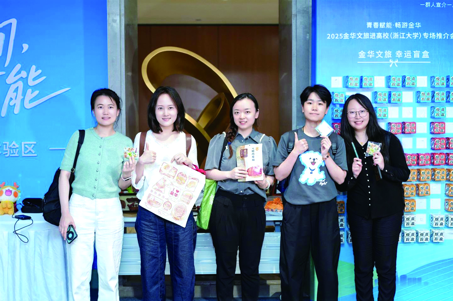 活动现场,多个沉浸式智游体验项目,让大学生们通过科技手段身临其境感受金华文旅的魅力。盲盒抽奖活动中,“金华文旅盲盒”备受瞩目,里面藏着景区门票、非遗手作等惊喜礼品,每一次开启都伴随着欢呼与期待,为大家带去满满欢乐与收获。AI互动问答区,“金华文旅知识闯关”屏幕前围满热情参与的学子,他们凭借对金华文旅知识的积累,答对问题领取“金华火腿小礼盒”或“婺剧脸谱书签”等特色奖品,在趣味互动中加深对金华文旅的了解。AR沉浸体验区更是人气爆棚,学子们戴上AR设备,仿佛置身于金华的山水之间、古街古巷,探秘未知的文旅角落,AI生成的“金华文旅”动态画卷如梦如幻,让大家对实地畅游金华充满向往。