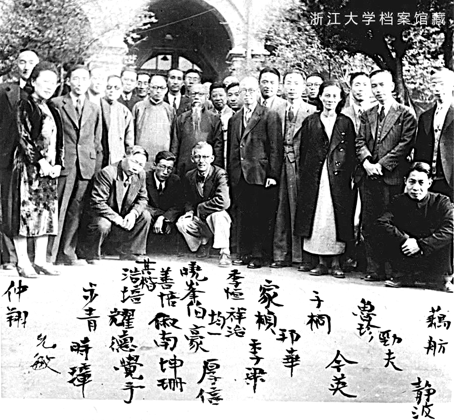 上世纪三四十年代浙江大学生物系教师合影,左三着西装站立者为胡步青 (浙江大学档案馆藏)