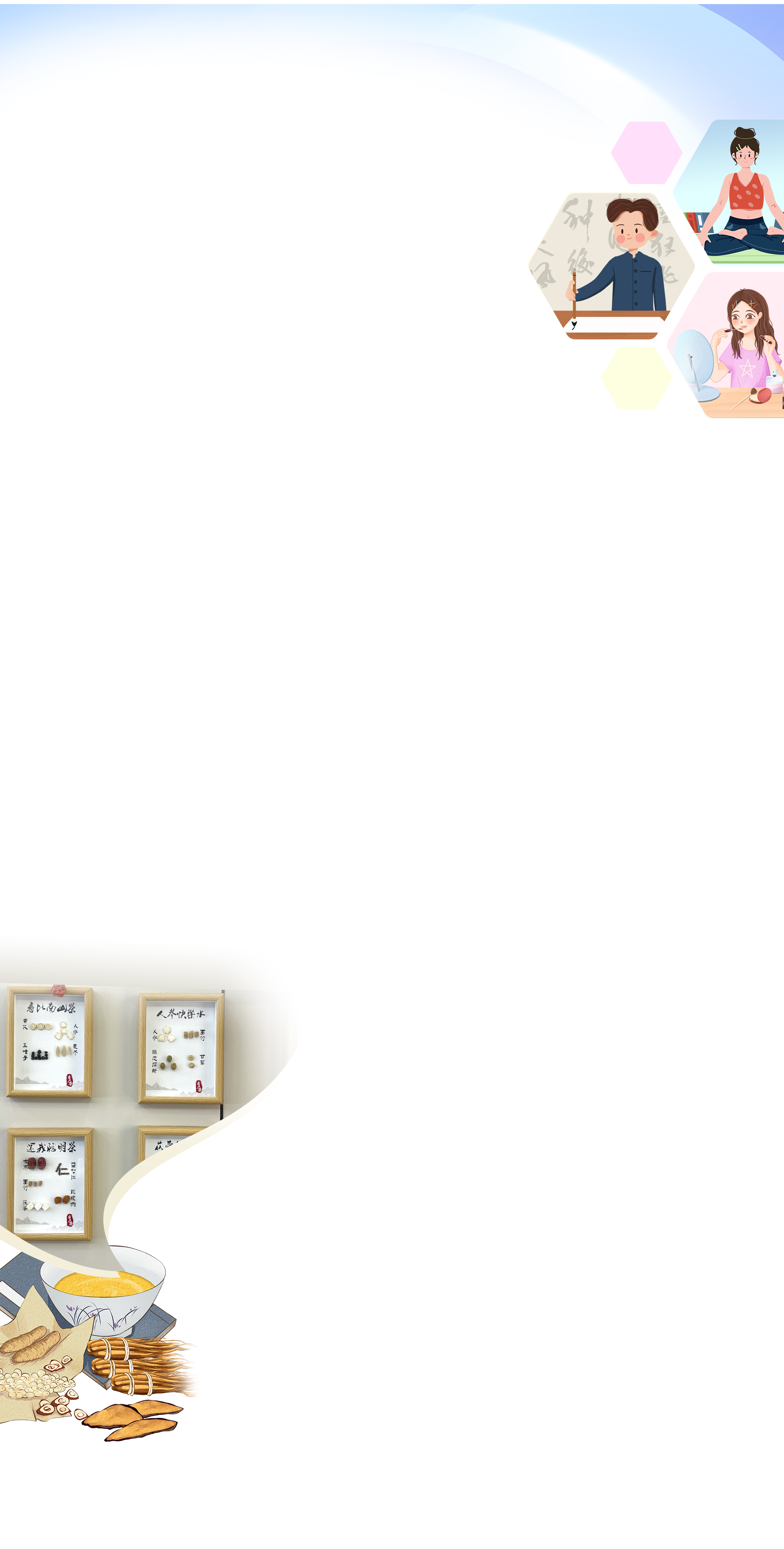 记者看到墙上的各款中药茶饮配方,发现一般由四到六味中草药组成,一看名称就能知道大致用途。如人参快乐水是由人参、铁皮石斛、玉竹、甘草组成,还我聪明茶是由益智仁、大枣、龙眼肉、玉竹、茯苓组成。
