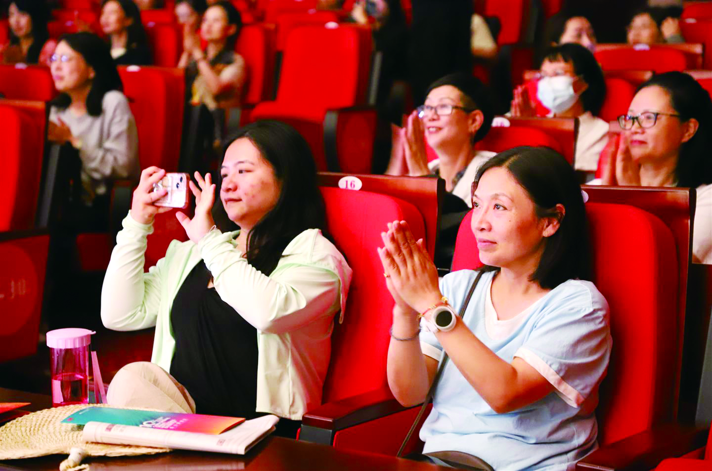 帷幕落下后半个小时,剧场内依旧有观众没离场,他们手握一份报纸,激动地相互交流,有的跑上台和演职人员合影留念。