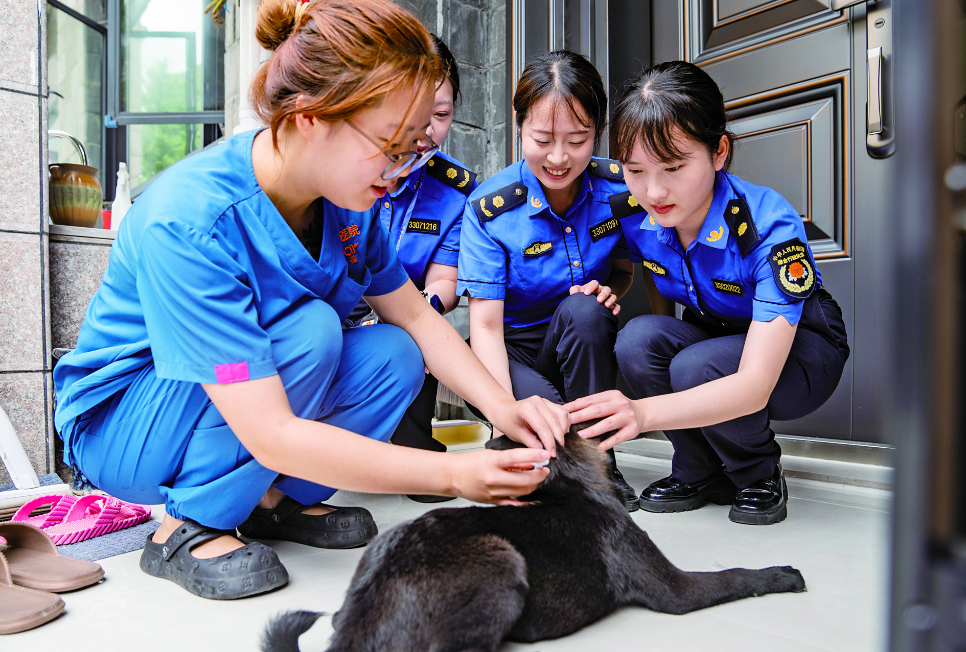 记者 陈业 文/摄 婺城区综合行政执法局近日组建上门服务小队,通过多种方式收集养犬人需求,提供疫苗注射、证件办理等一站式上门服务。