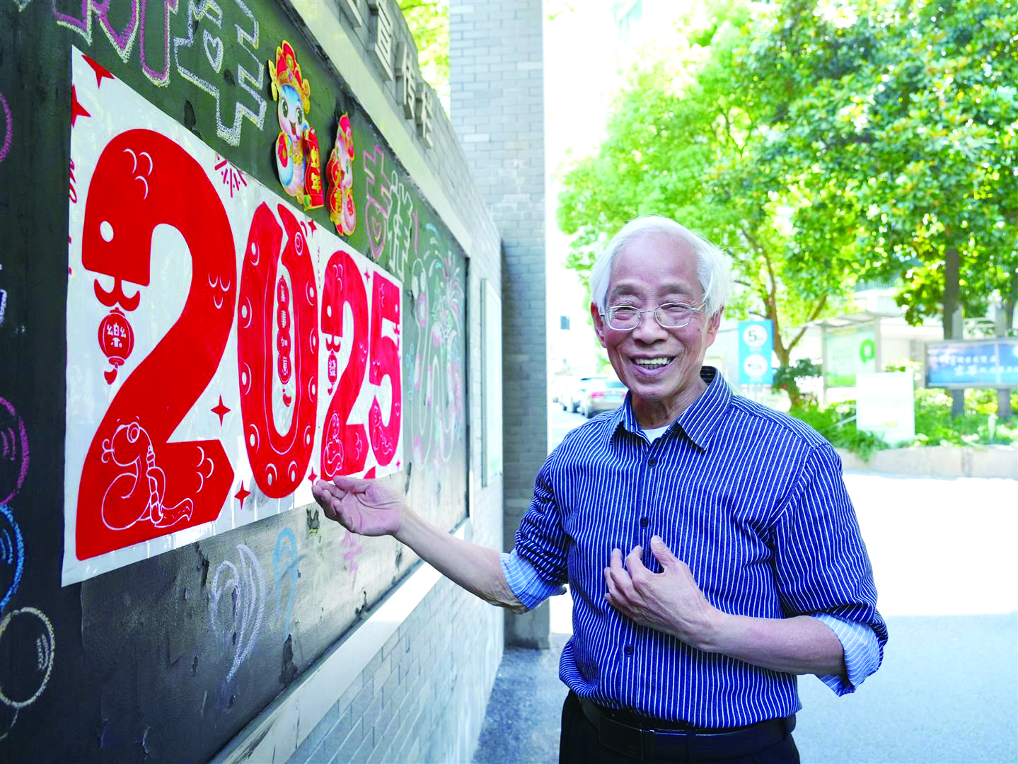 方寸之间,经由妙手,平凡的黑板变成了传递温暖的社区文化载体。从春节的喜庆到亚运会的吉祥物,从端午民俗到反诈宣传,他的黑板报既是节日仪式的记录者,又是时代大事的传播者。“设计上注重视觉焦点,色彩要鲜明,内容架构要清晰明了,让人一目了然。”在胡延巨看来,黑板报带着独有的年代感创造了独特的公共文化空间,手绘黑板报比电子屏更具温度与亲和力,能够形成社区文化记忆。即便2021年搬离明月京华小区后,胡延巨仍坚持乘坐公交车更新内容,这种执着令人动容。
