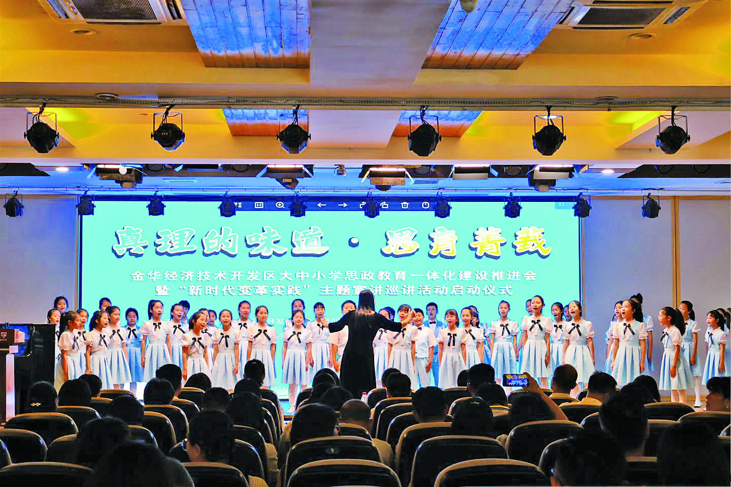本报消息(记者 吴璇)近日,金华开发区大中小学思政教育一体化建设推进会暨“新时代变革实践”主题宣讲巡讲活动启动仪式在金华市宾虹小学举行。