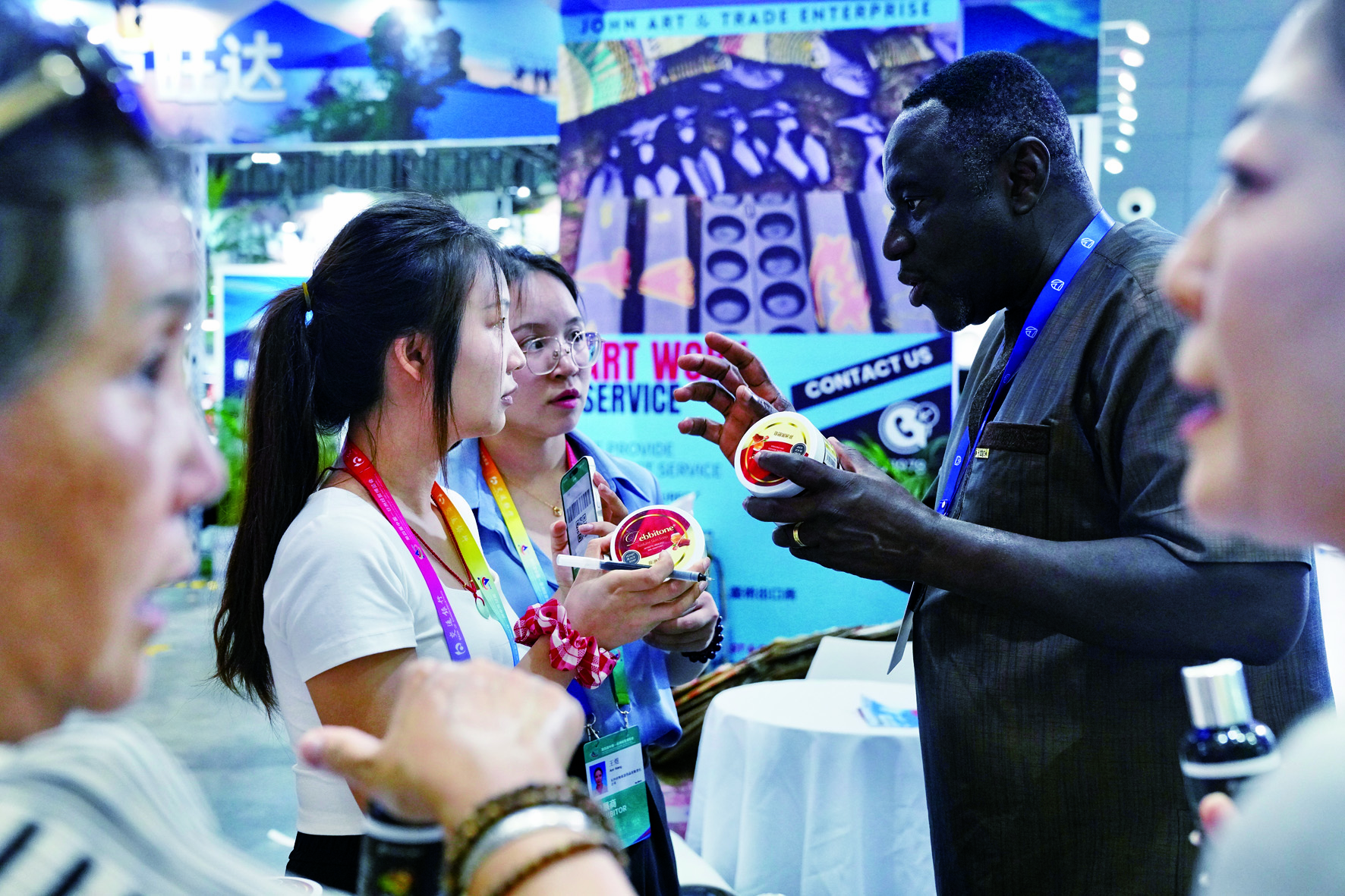 6月12日,在长沙国际会展中心,参展商推介来自非洲的护肤品。 当日,第四届中国-非洲经贸博览会在长沙举行。本届博览会以“中非共行动 逐梦现代化”为主题,会期4天。 新华社发