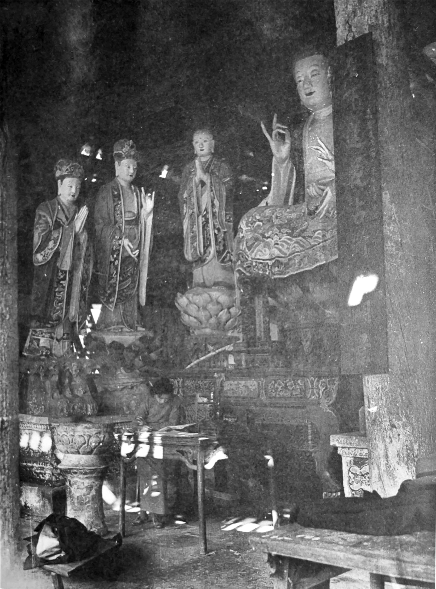 那是1934年的11月,就在现在阳光照到的那个地方,有一张高桌,年轻的林徽因背朝佛坛,认真伏案工作。