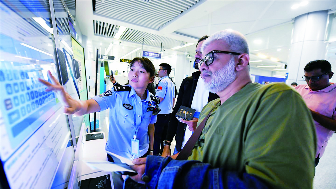 记者 傅俊 文/摄 昨日,义乌出入境边防检查站的民警协助240小时过境免签外籍旅客办理了过境免签的系列申报内容。现场还有当地文广旅体局、民航站等单位设立“涉外综合事务服务窗口”,为游客提供免签过境、移动通信、电子支付等“一站式”服务。 日前,义乌出入境边防检查站推出外国人入境卡自助填报终端,该终端具备多国语种填报、多种通关类型选择等功能,采取网上提前申报路径信息、自助打印入境卡等流程。通过扫码打印等便利化措施提升通关效率,为外籍旅客提供便捷的入境体验。