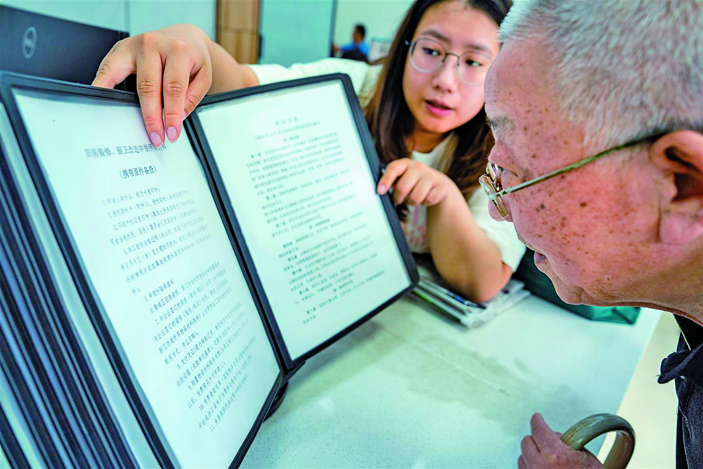 记者 傅俊 文/摄 “之前听邻居说装修旧房能领补贴,但不知道怎么操作。你们能不能给我仔细讲讲改造要求、能领多少补贴、怎么领?”昨日,74岁的居民武宪增带着对旧房装修补贴政策的疑惑,来到婺城区城北街道站前社区党群服务中心,社区工作人员为其仔细介绍补贴政策相关事项。 据了解,为有序推进旧房装修及厨卫局部改造补贴政策落地,我市多个社区组织多维服务,深入老年人较多的小区进行面对面指导,扩大政策辐射面,将惠民政策送入居民家中。截至目前,婺城区房屋装修补贴政策已发放补贴资金400余万元,惠及住户350余户。