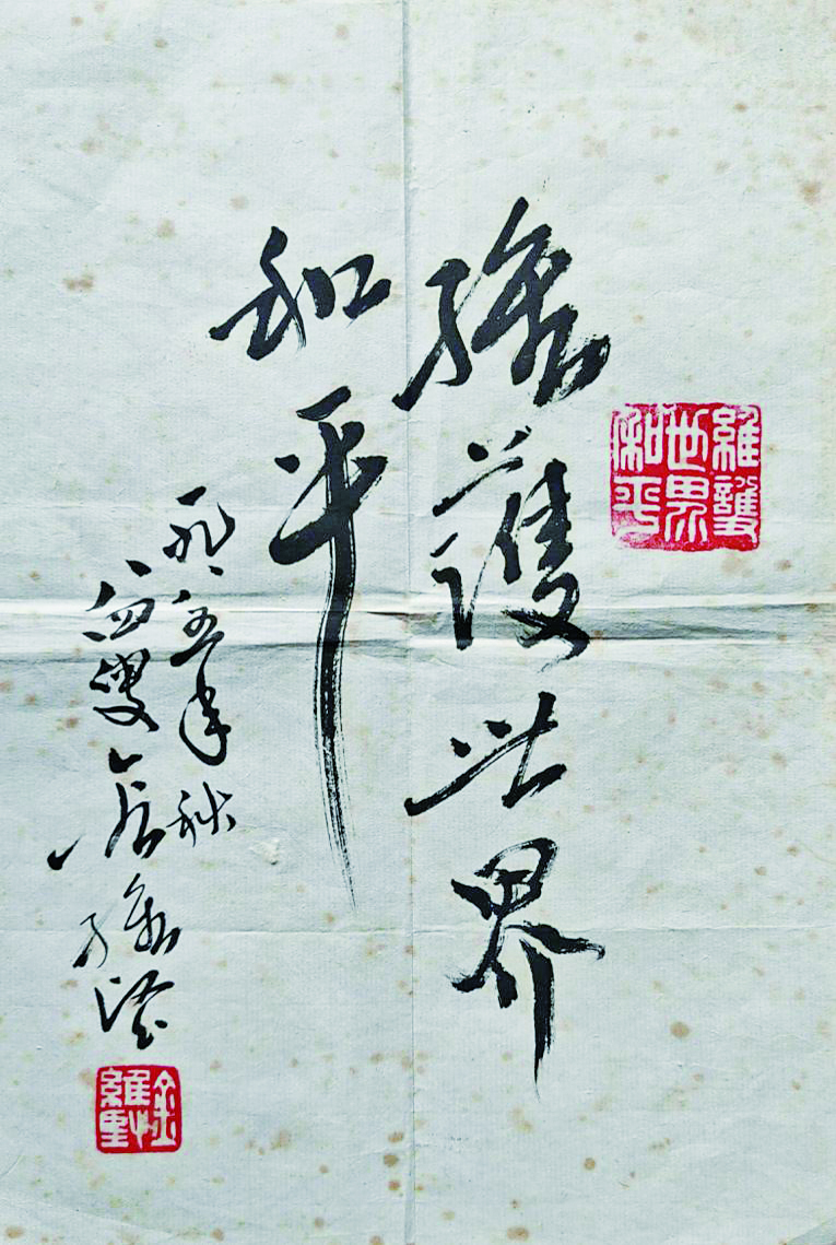 1985年秋,已年近84岁的金维坚拿出尘封许久的篆刻刀,铁笔走龙蛇,一气呵成刻就“维护世界和平”一印,印章雄奇朴茂、虚实相生,邓派印风跃然纸上。颇感满意后,他作了题签,并落款“一九八五年秋,八四叟金维坚”,钤印白文印“金维坚”。