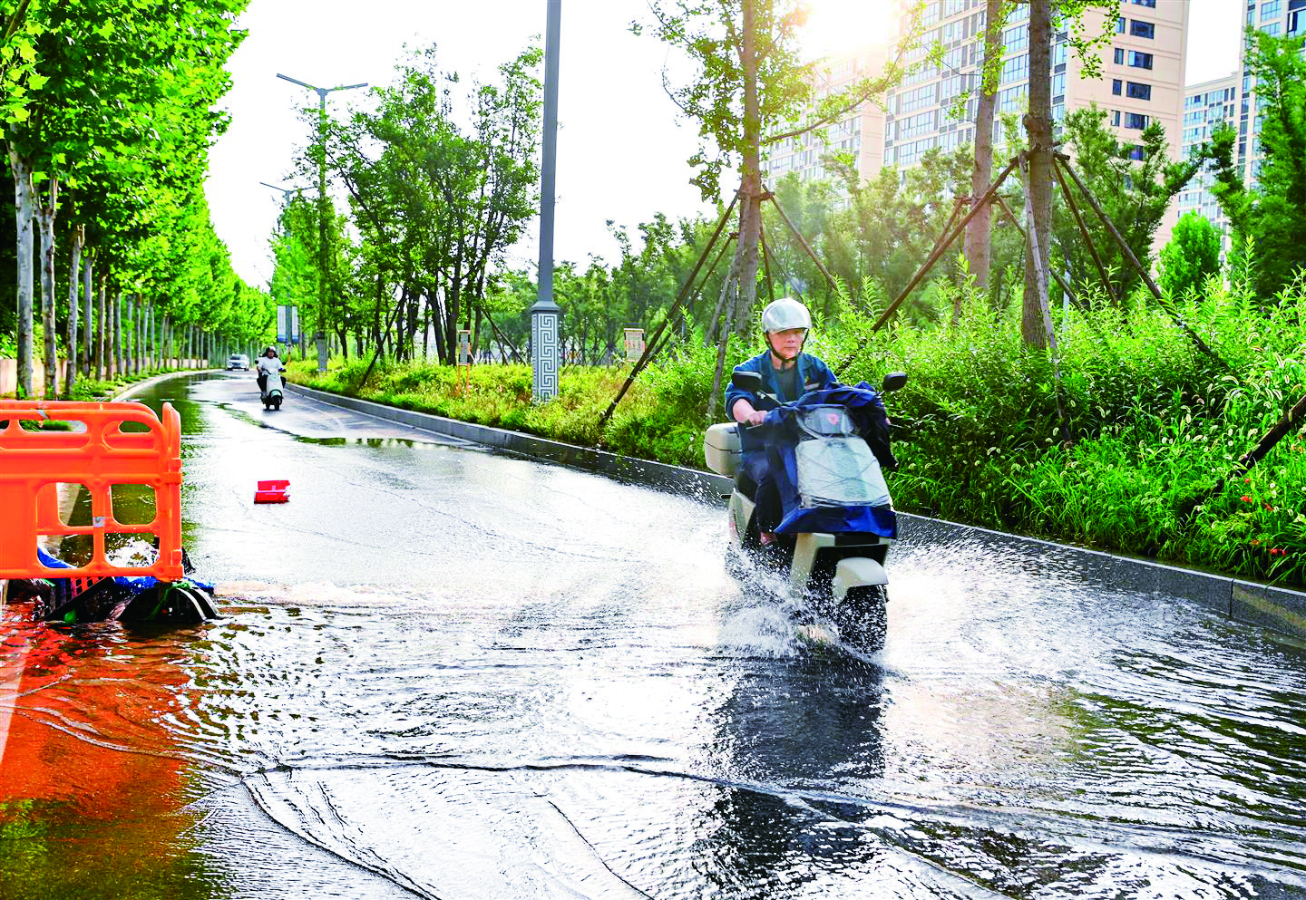 记者 李建林 文/摄 连日来,由于连续降雨,一些工地出现积水,施工方想方设法进行排水。然而,在市区人民西路一处建筑工地,施工人员竟将排水管直接甩到路面上。排水管中的水顺着路面肆意流淌,造成周边路面积水10多厘米深,车辆经过时溅起水花,行人纷纷躲避。