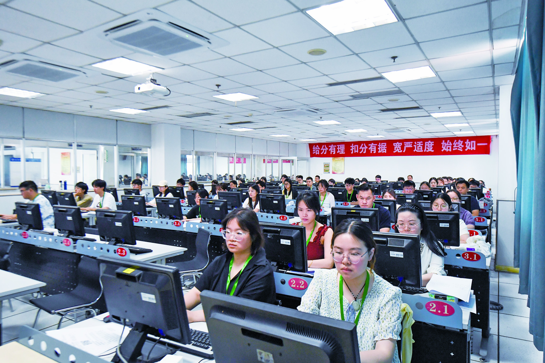 6月17日,阅卷人员在南京师范大学阅卷点评卷。 据介绍,江苏省2025年高考236万份试卷(答卷)评卷核查工作将于6月24日前结束。 新华社发